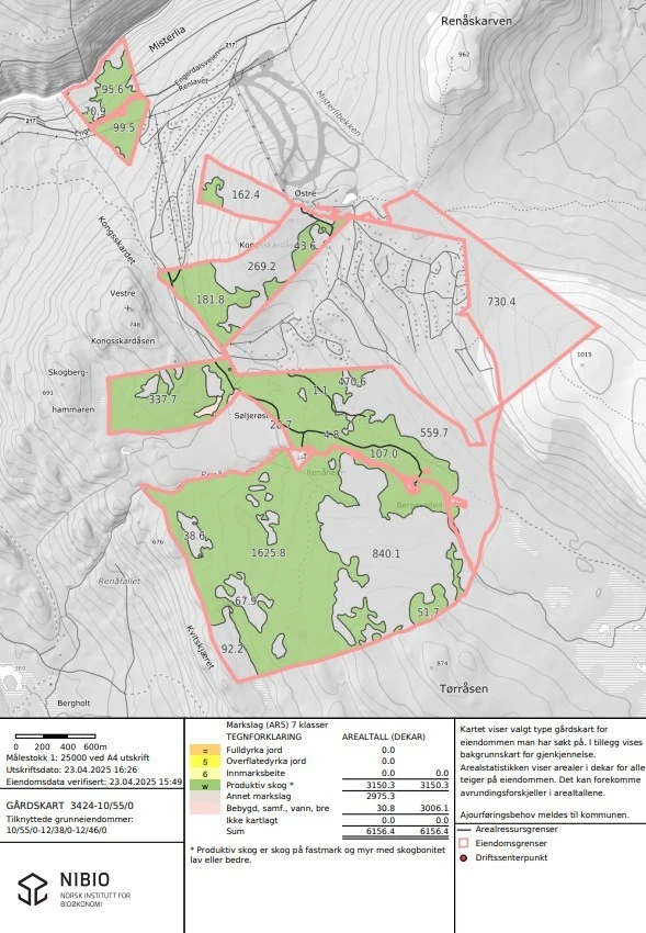6160 daa jakt- og fiskeeldorado i Rendalen | 4414 daa produktivt | Hyttetun | Ingen boplikt