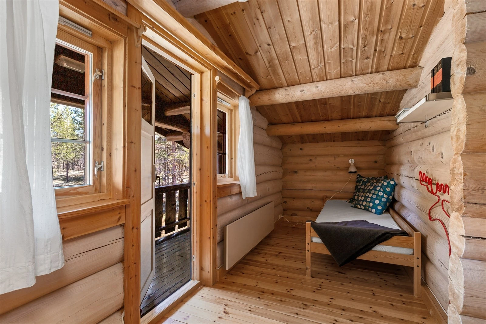 Annekset er en maskinlaftet tømmerhytte bygd på 70-tallet med grunnmur av steinblokker. Den fikk nytt overtak og ovn/pipe i 2021. Her er det senger. Den er enkel å fyre opp og blir brukt under korte opphold i den kaldeste tiden, samt gjesterom hele året. Elektrisitet er innlagt.