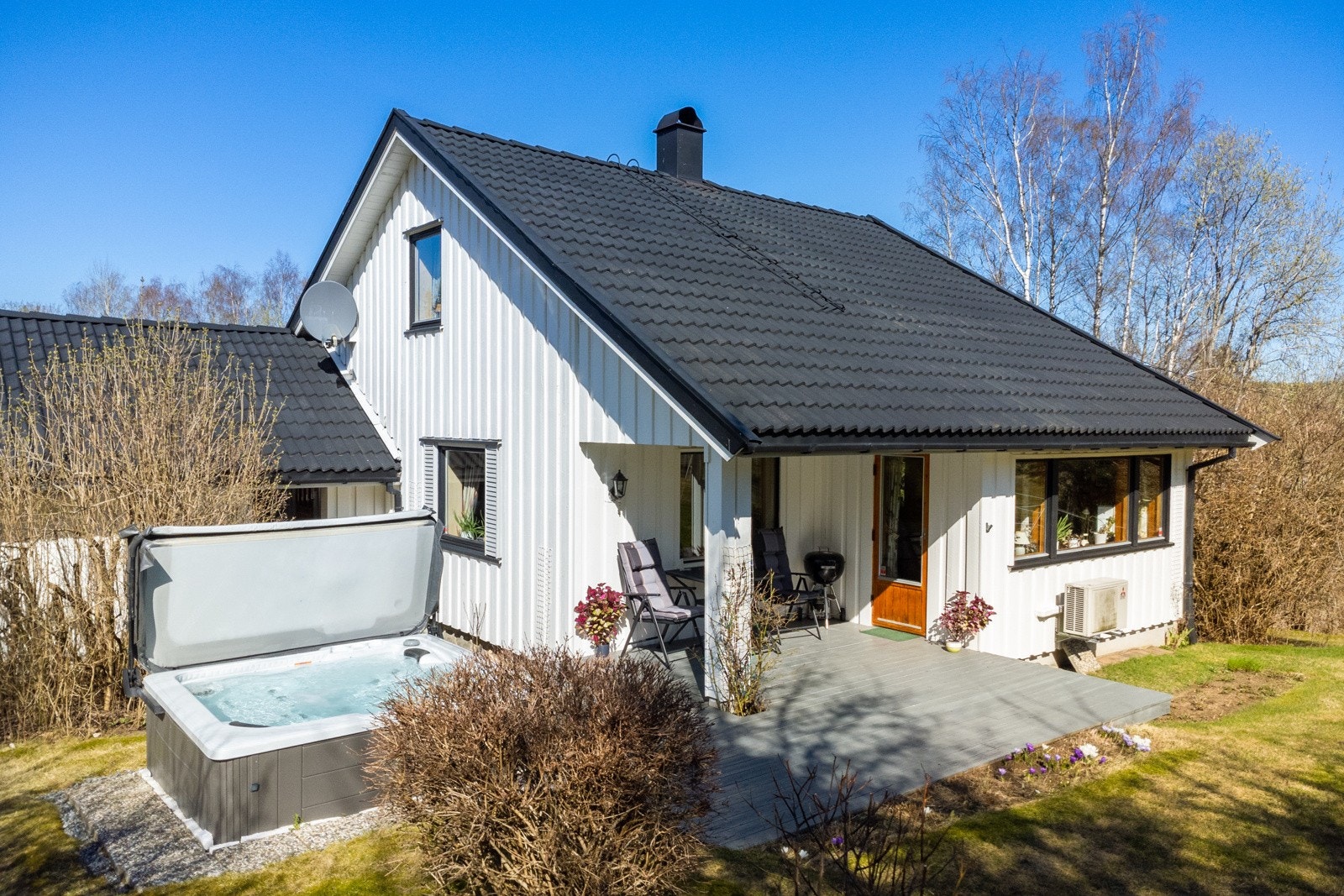 – Godt opparbeidet hage med romslige plenarealer og diverse beplantning. Gode solforhold