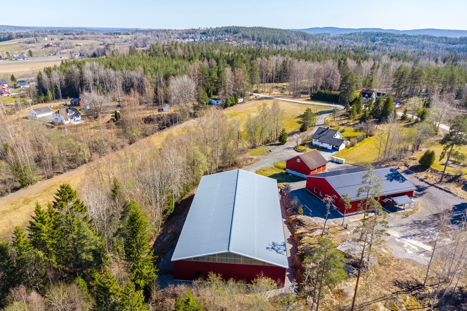 Hestegård m/ridehall, stallbygg, fin driftsbygning m/stallbokser og koselig våningshus. Totalt 59 daa.