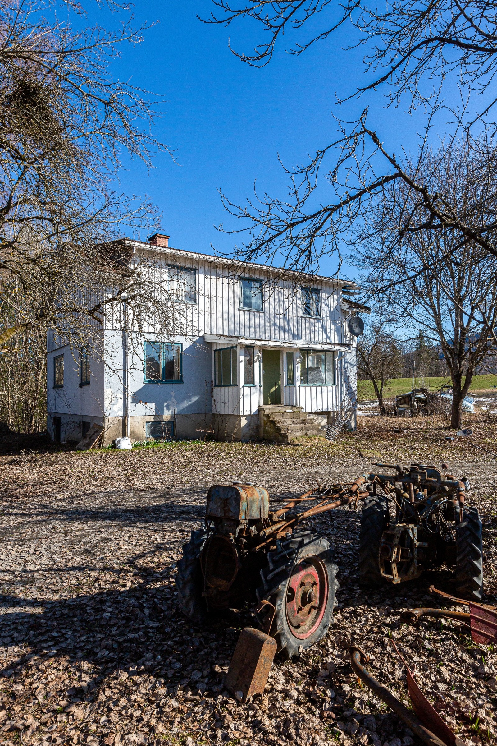 Våningshuset varmes opp med ved, varmepumpe og elektrisk.