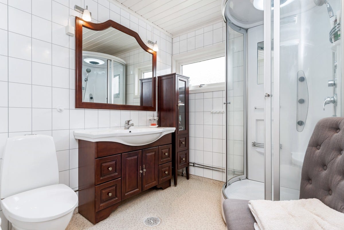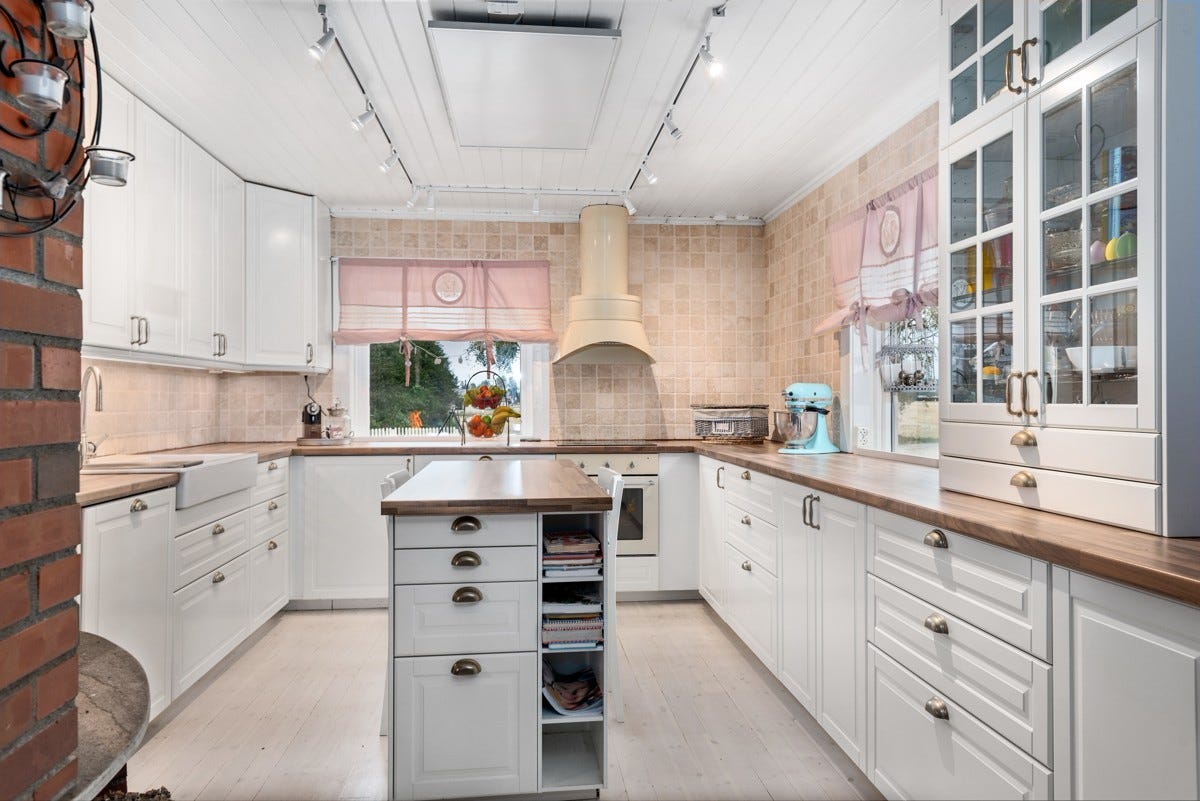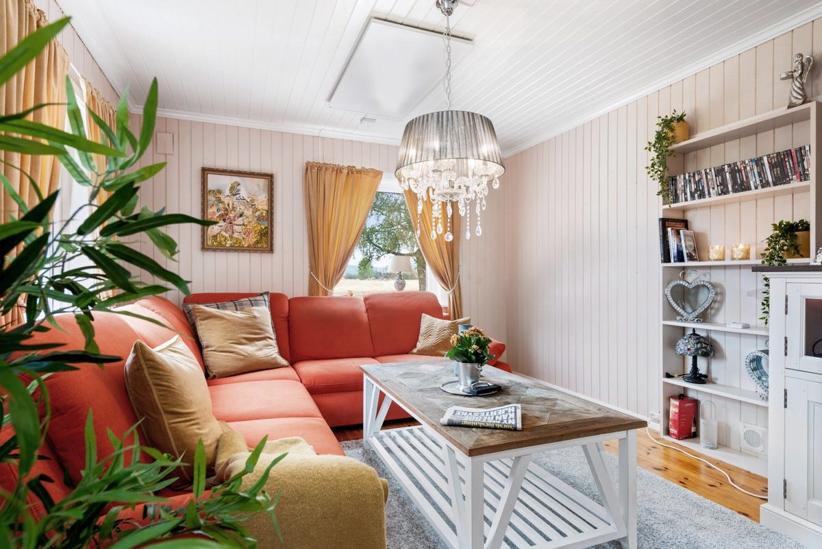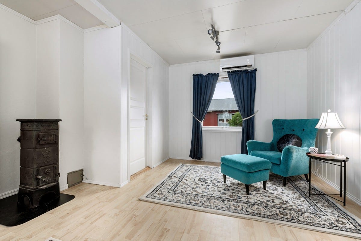 innehar normalt god standard med en grunnflate i 1. etasje på ca. 140 kvm som rommer et stort