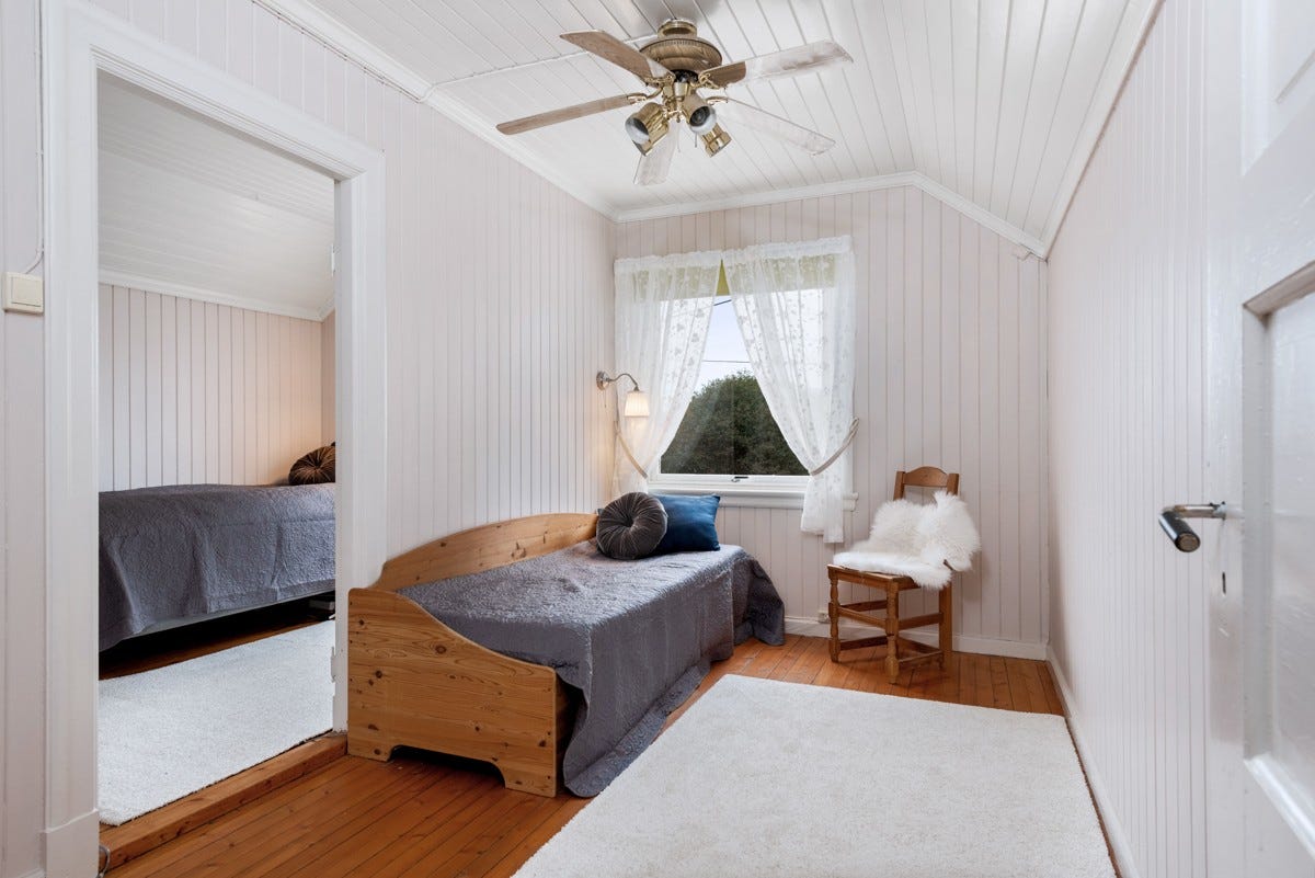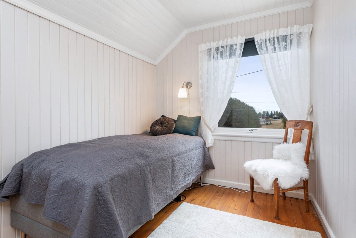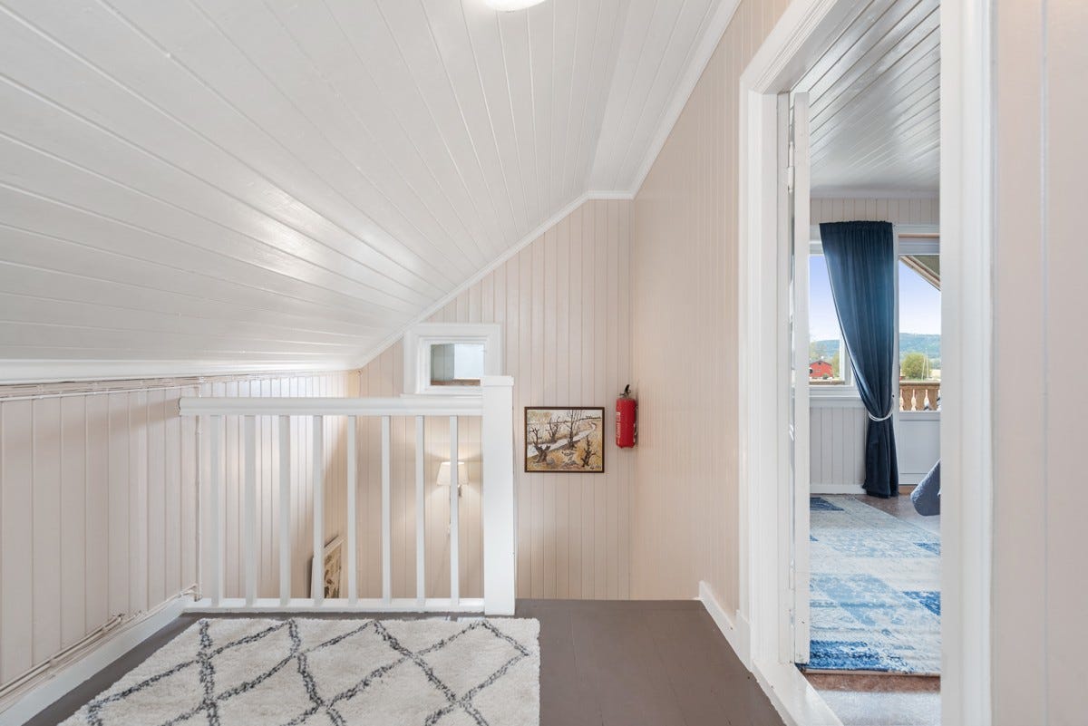 etasje finnes tre soverom og gang. Det er videre bygget opp en stor usjenert og forseggjort terrasse mot