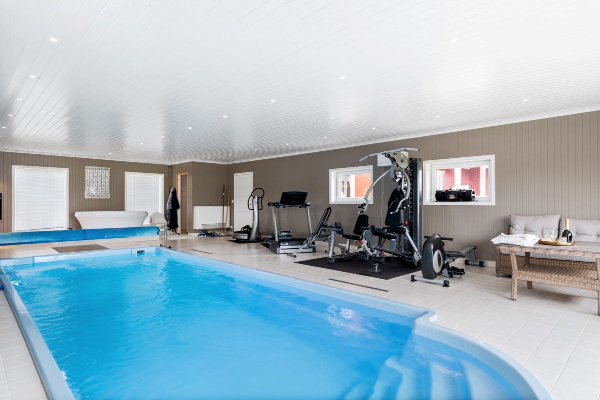 det er også plass til en rekke treningsapparater om ønskelig.