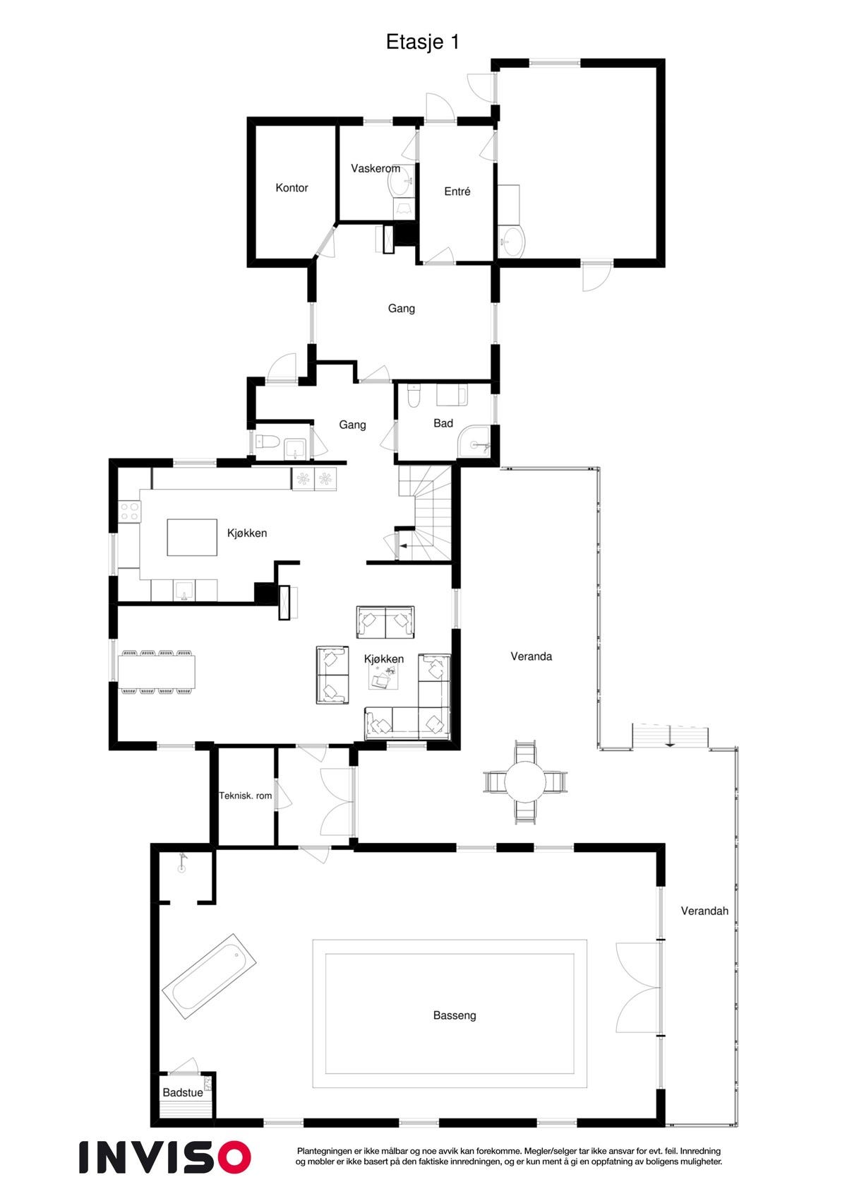 kjøkkenrom, stor stue, bad, separat wc, kontor, vaskerom, entré/gang og øvrige disponible rom. I andre