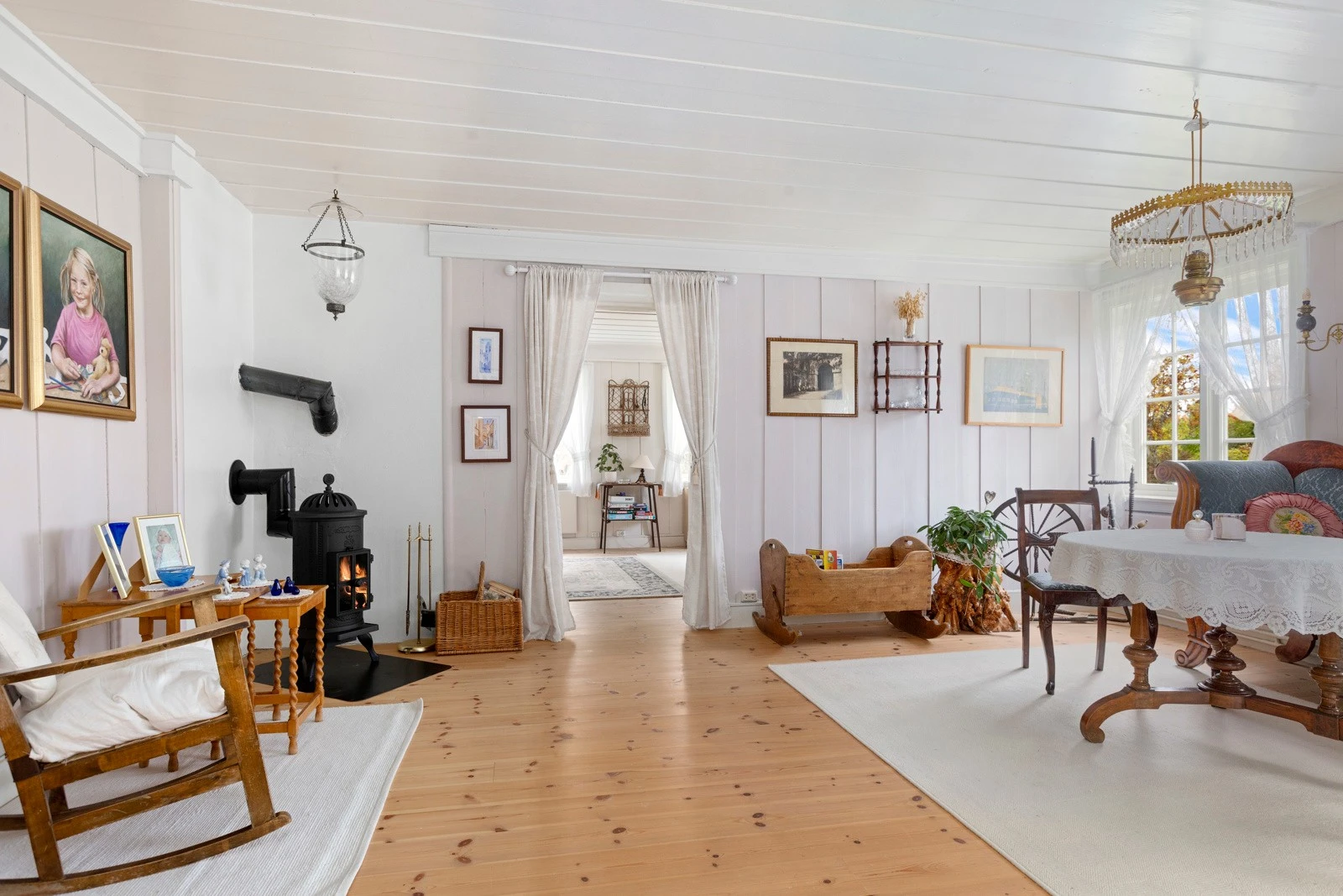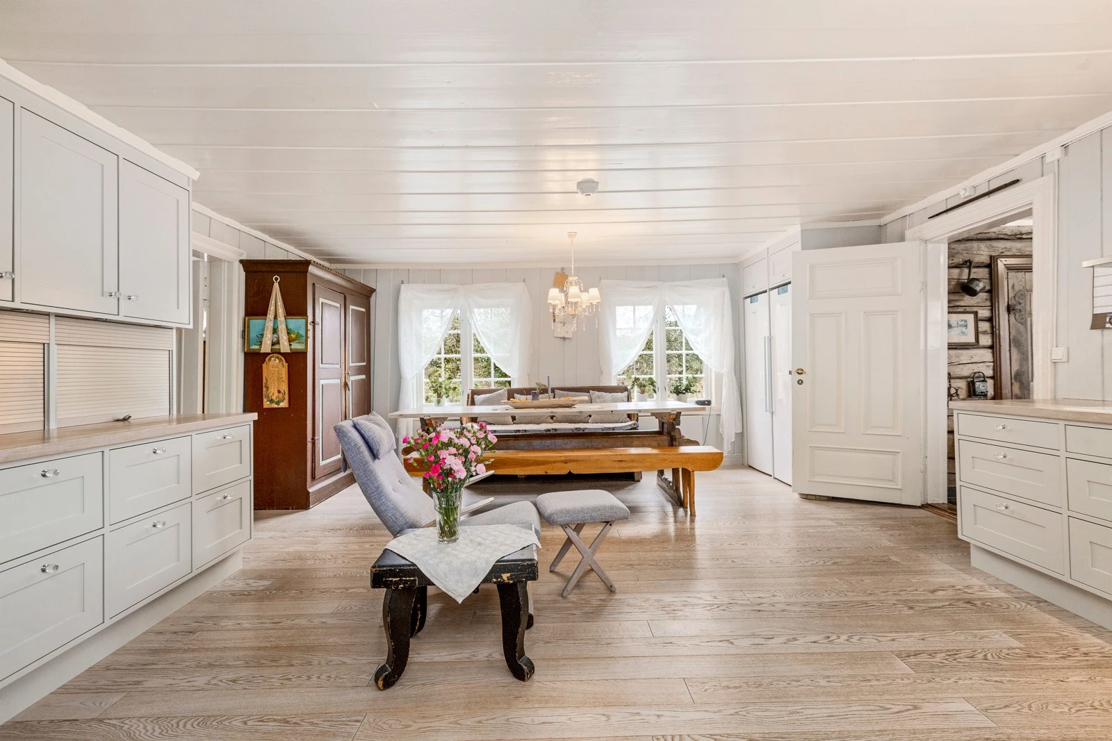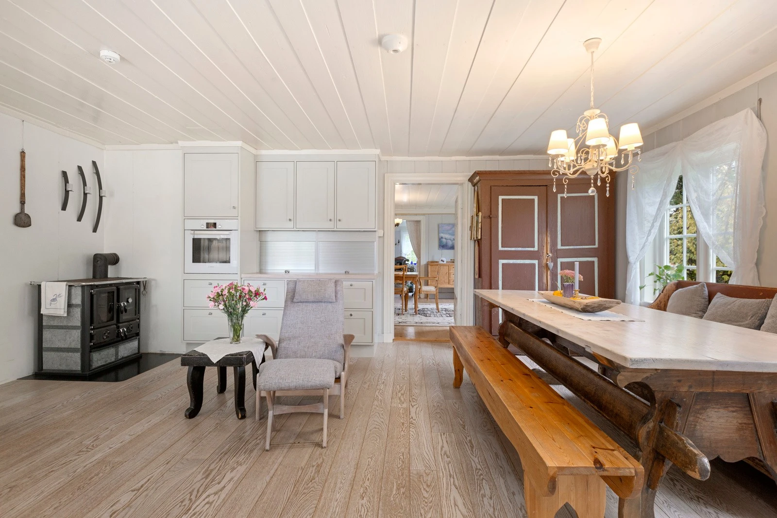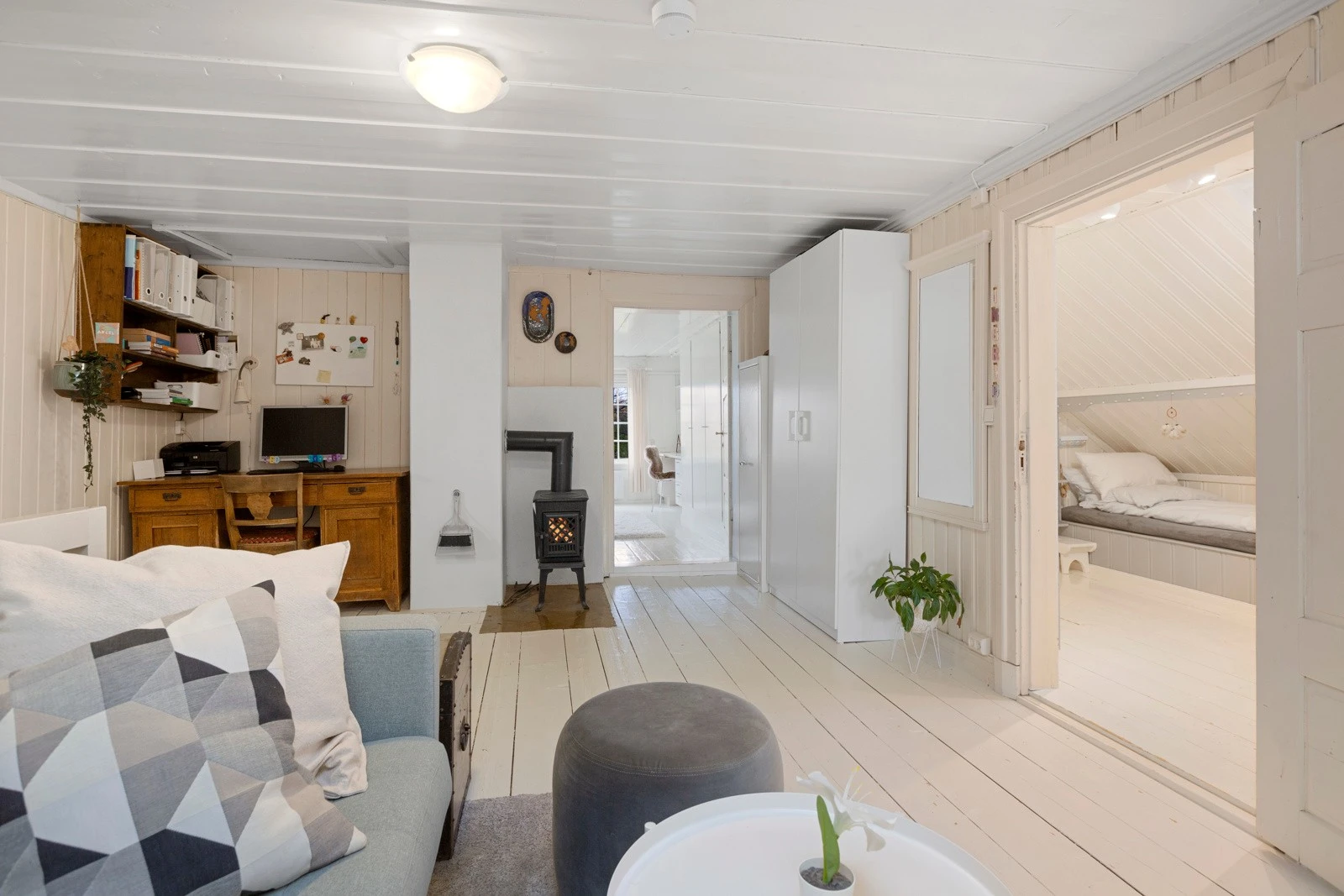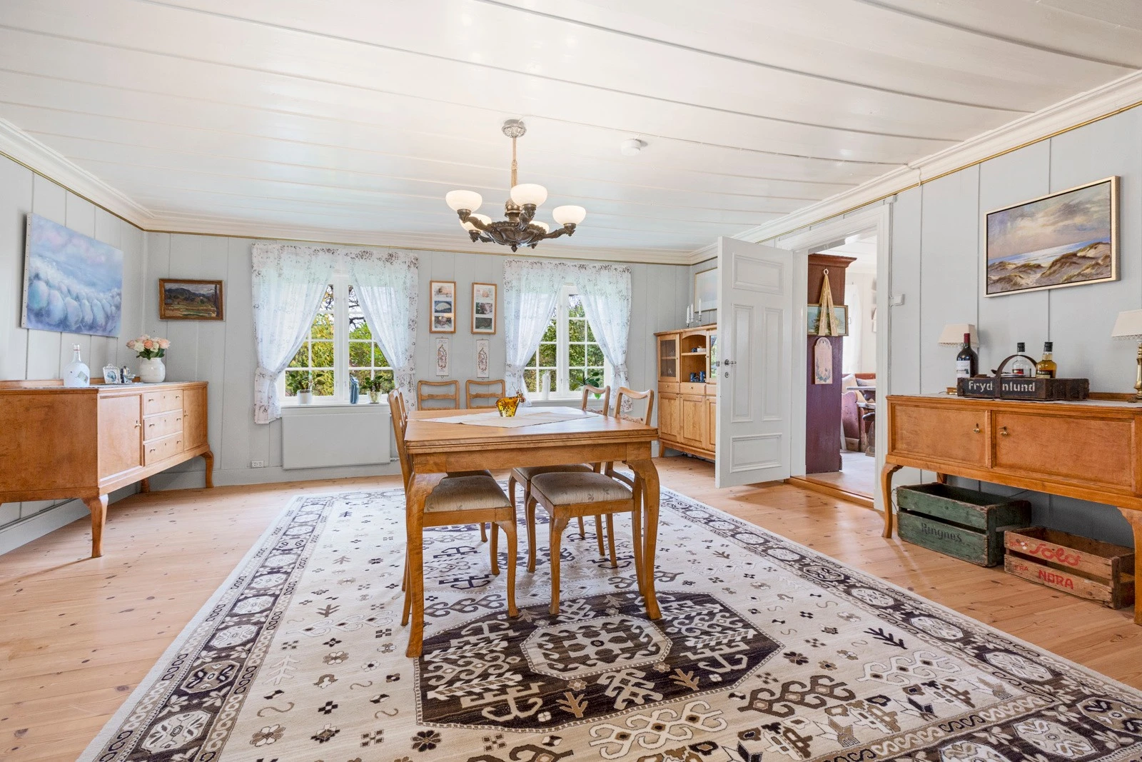 Innvendig har boligen malte fyllingsdører.