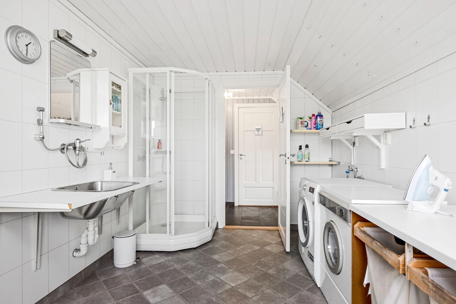 Vedskjulet – har tilgang fra begge sider, støpt plate og åpen himling.
