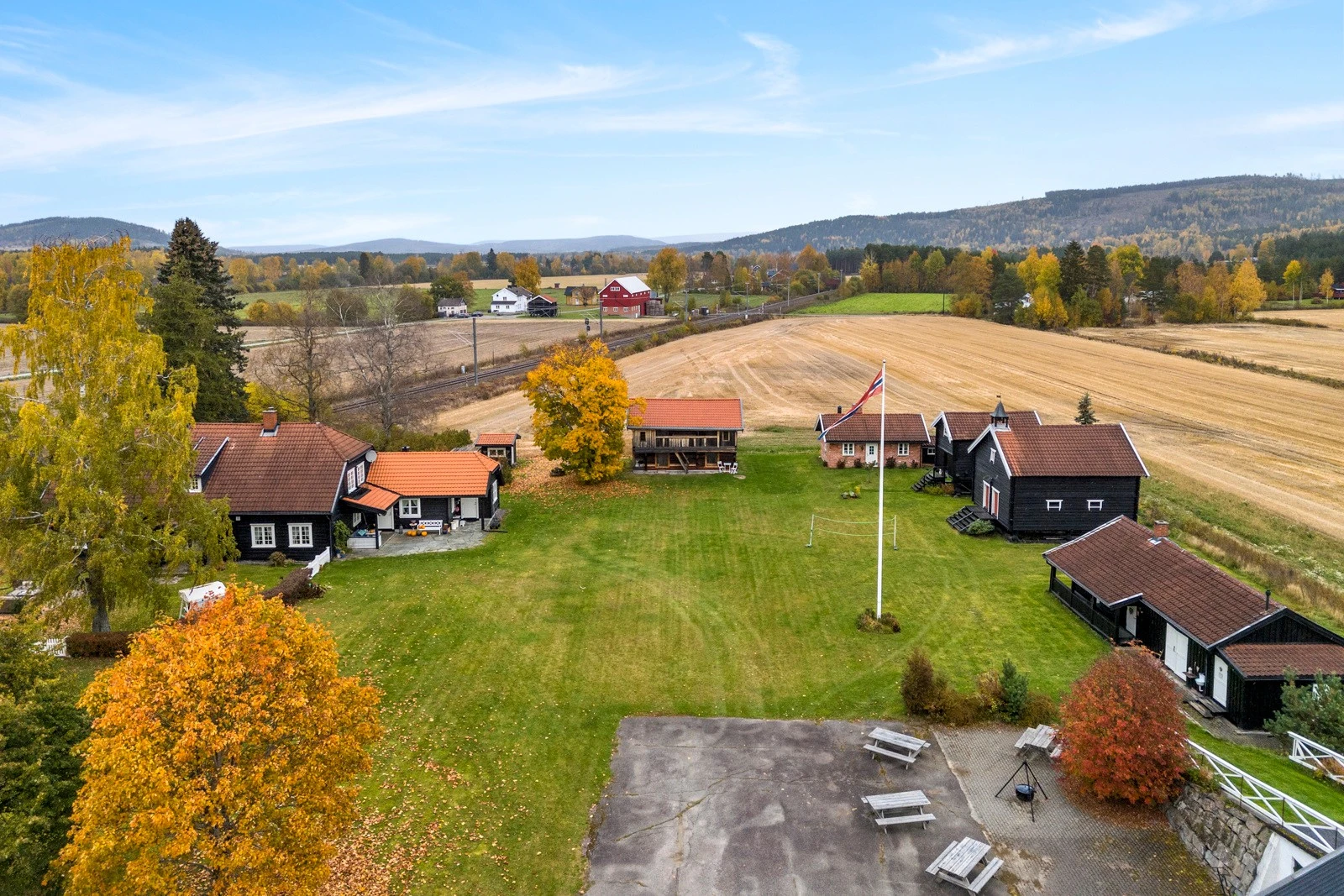 En flott eiendom med strandlinje mot Glomma og omfattende bygningsmasse inkludert en nyere hytte i skogen. Gårdstunet omkranses av åpne dyrkede arealer og er helt privat. Totalareal på 1.917 daa hvorav 671 daa. er dyrket mark og 1.129 daa. er produktiv skog.