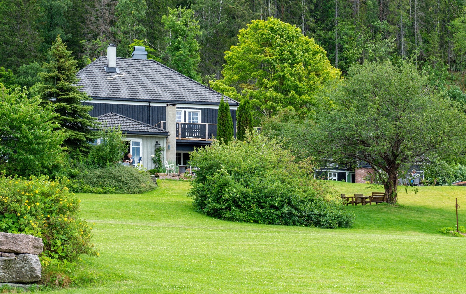 En særegen prakteiendom på Liers solside med nydelig utsikt over dalen.