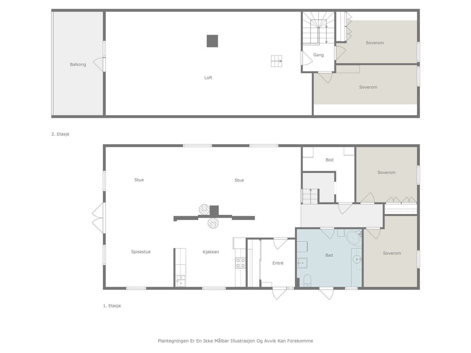 2. Etg: Gang, 2 soverom, uinnredet loft