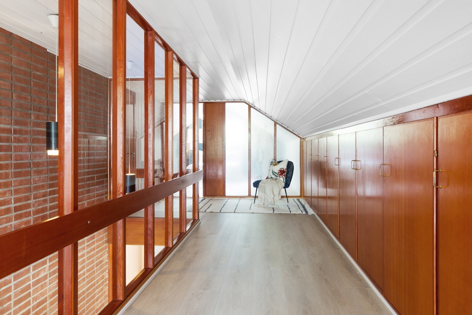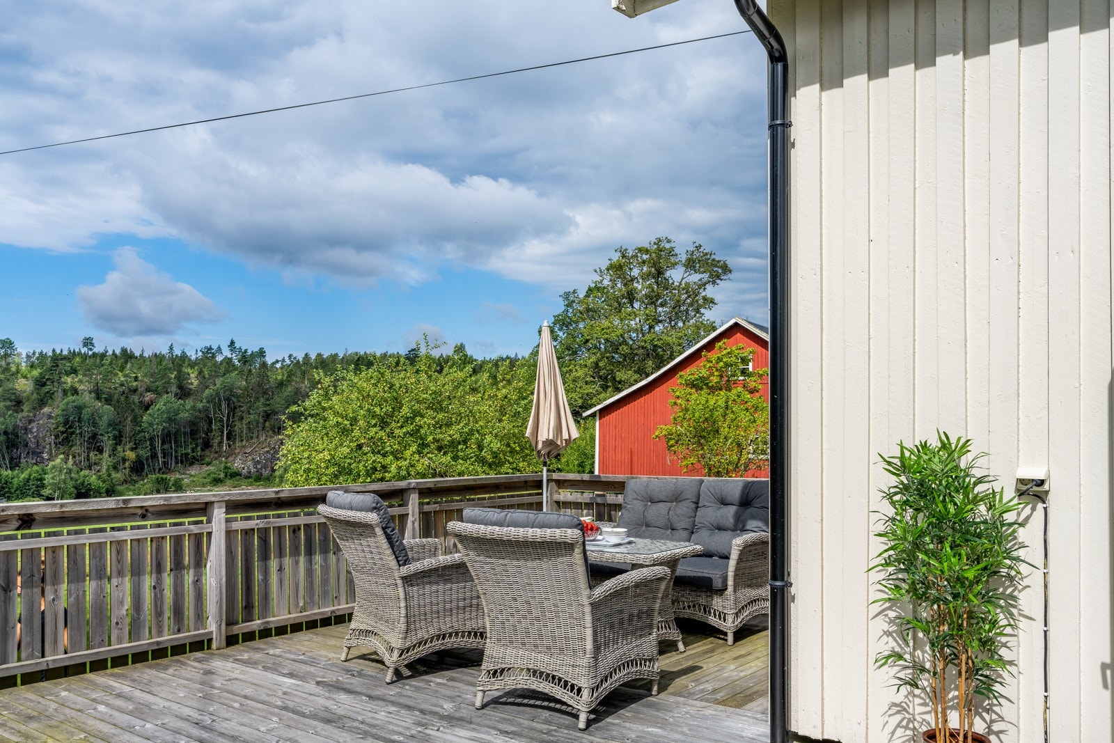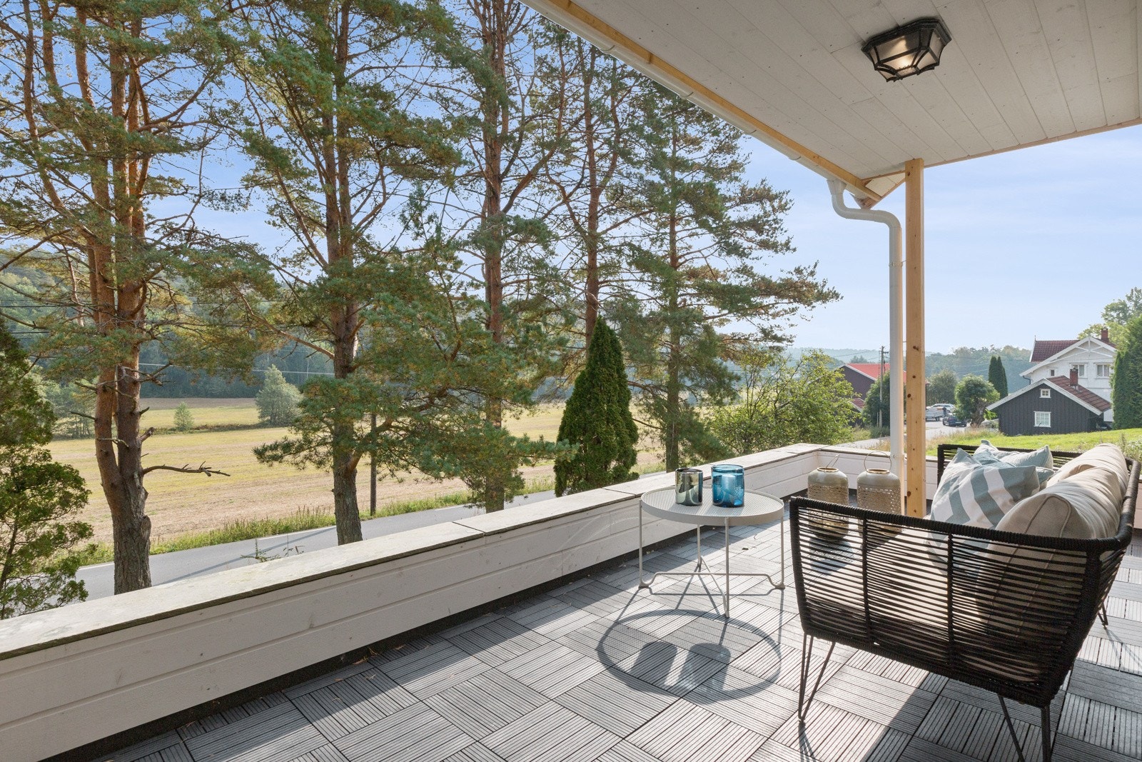 store heve- og skyvedører ut til balkong og terrasse på begge sider av boligen. I etasjen over har man en