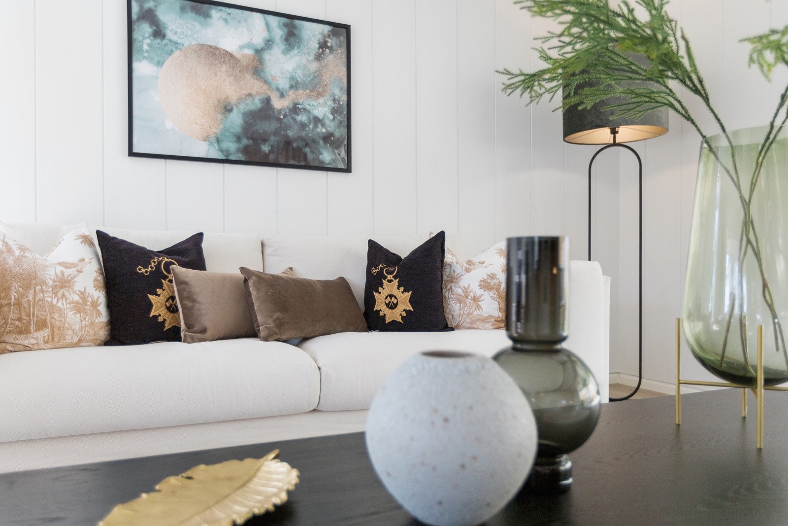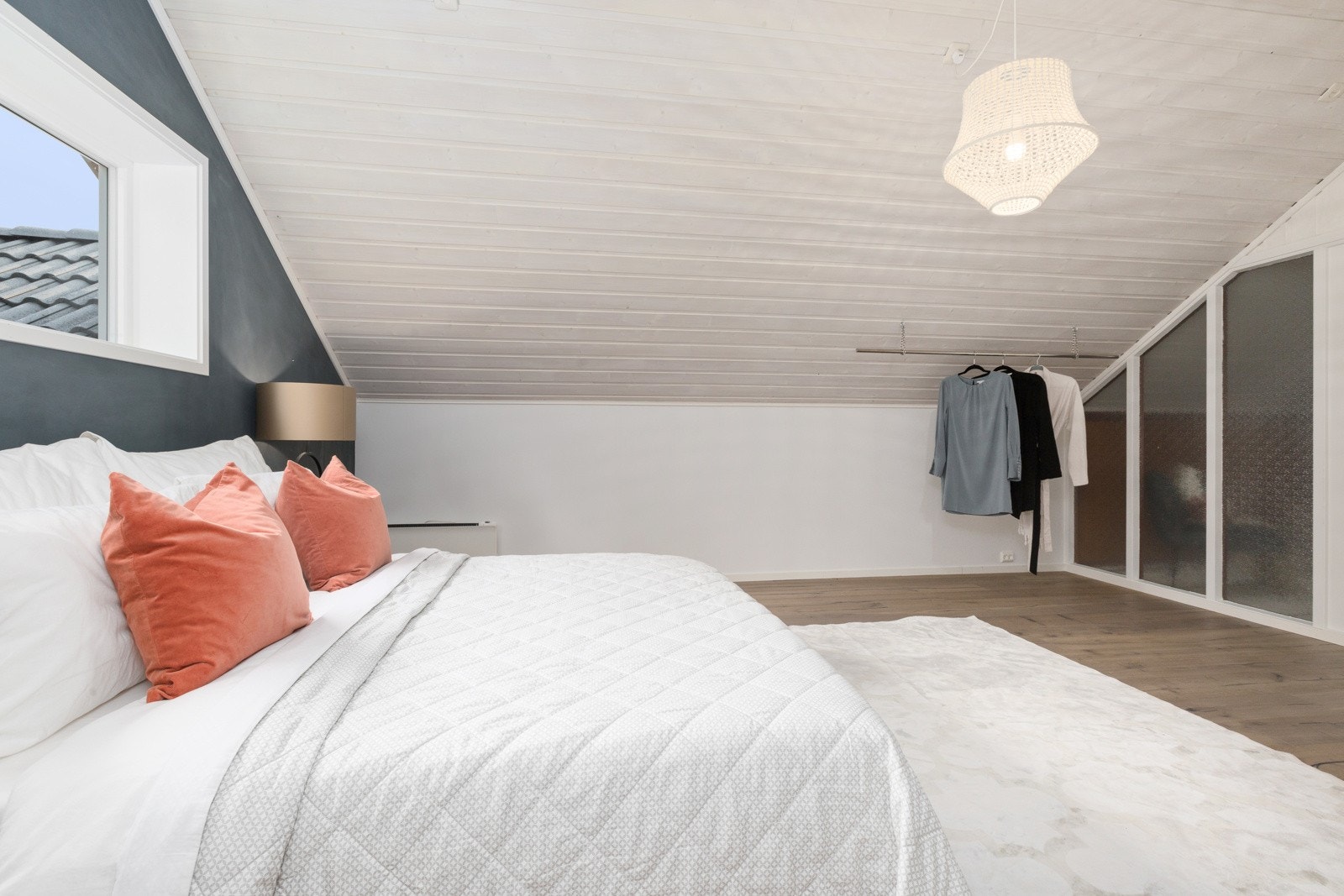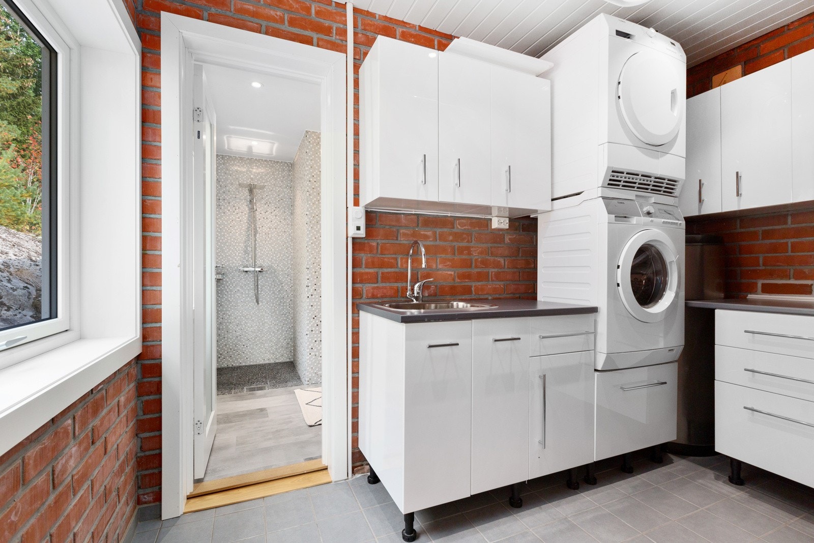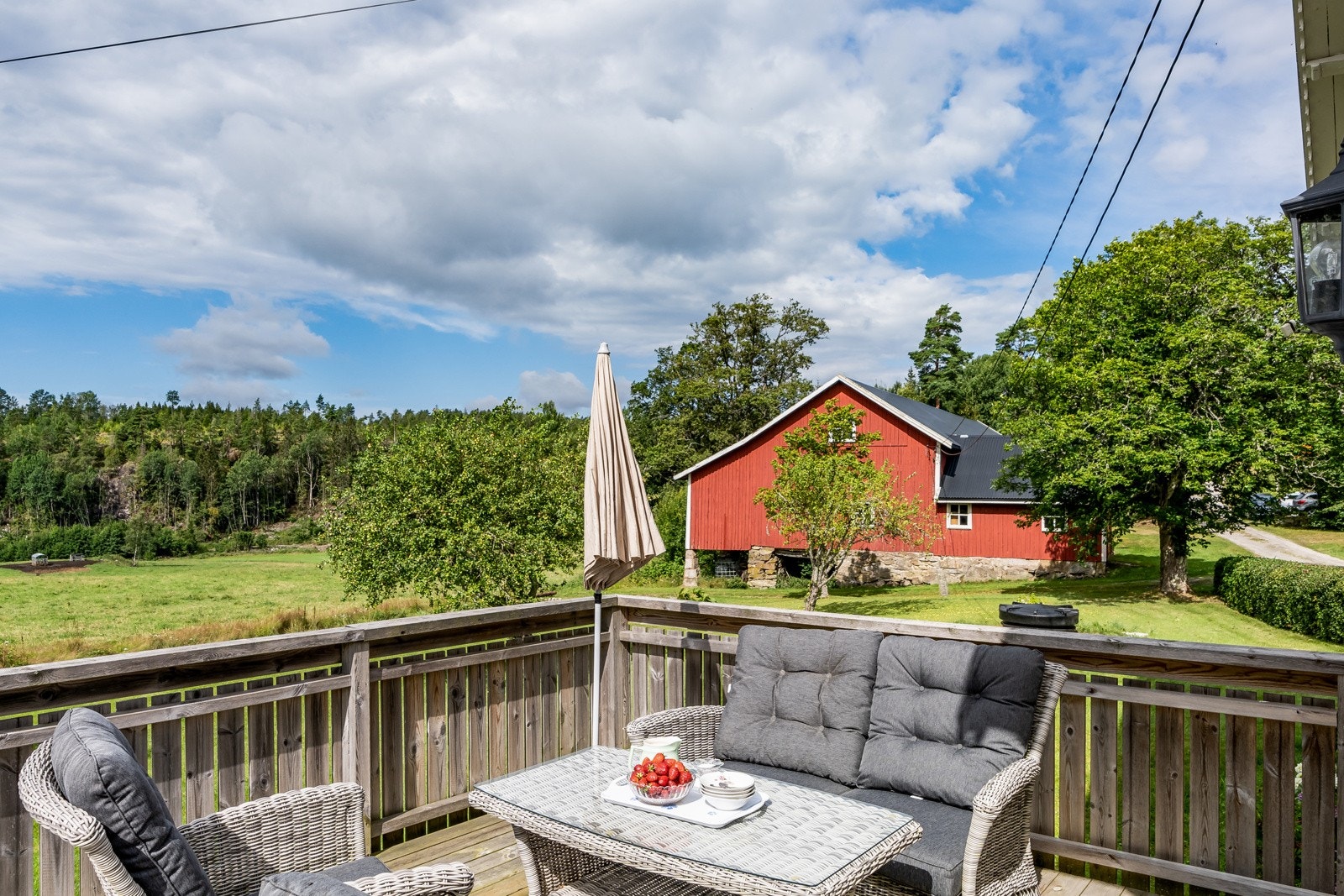 store heve- og skyvedører ut til balkong og terrasse på begge sider av boligen. I etasjen over har man en