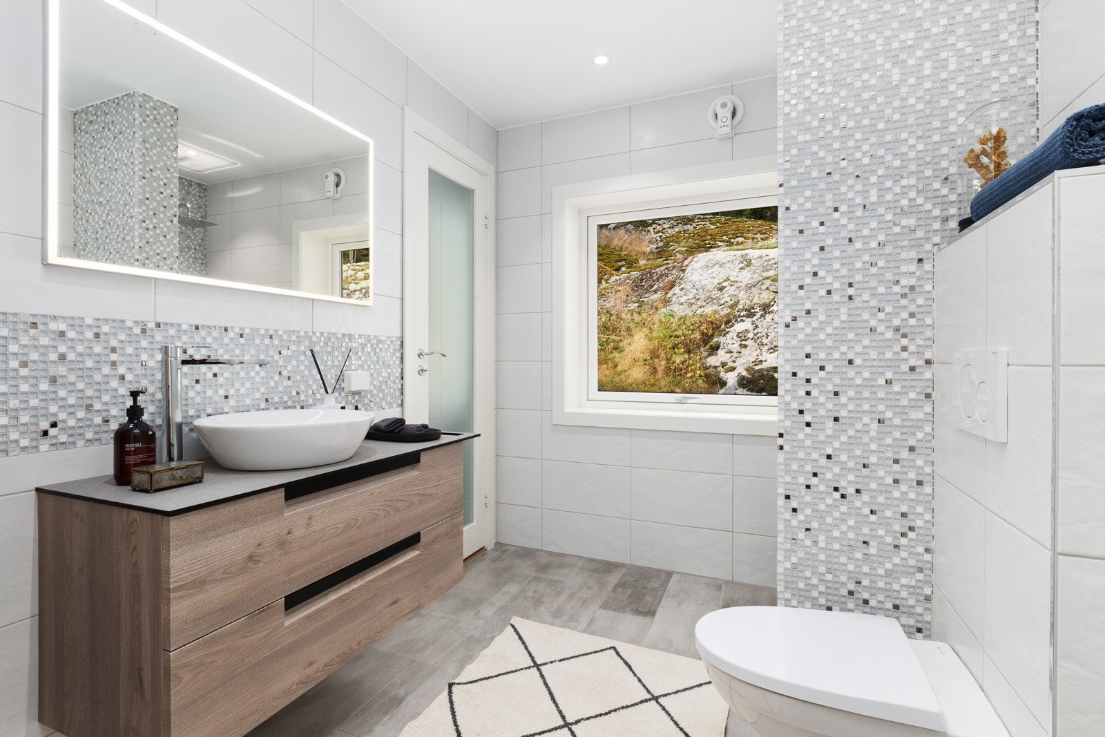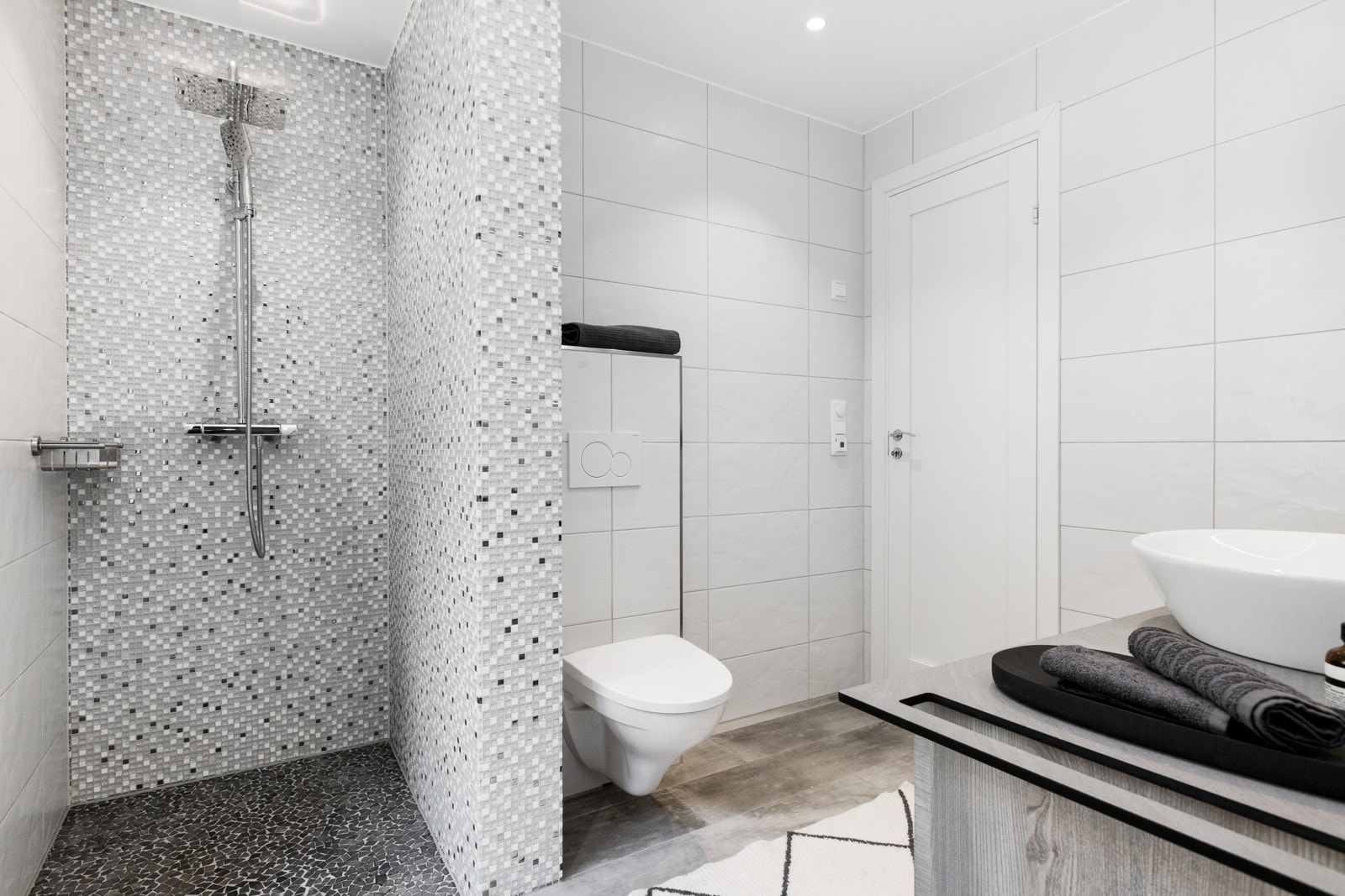 Våtrom er flislagte med underliggende membran.