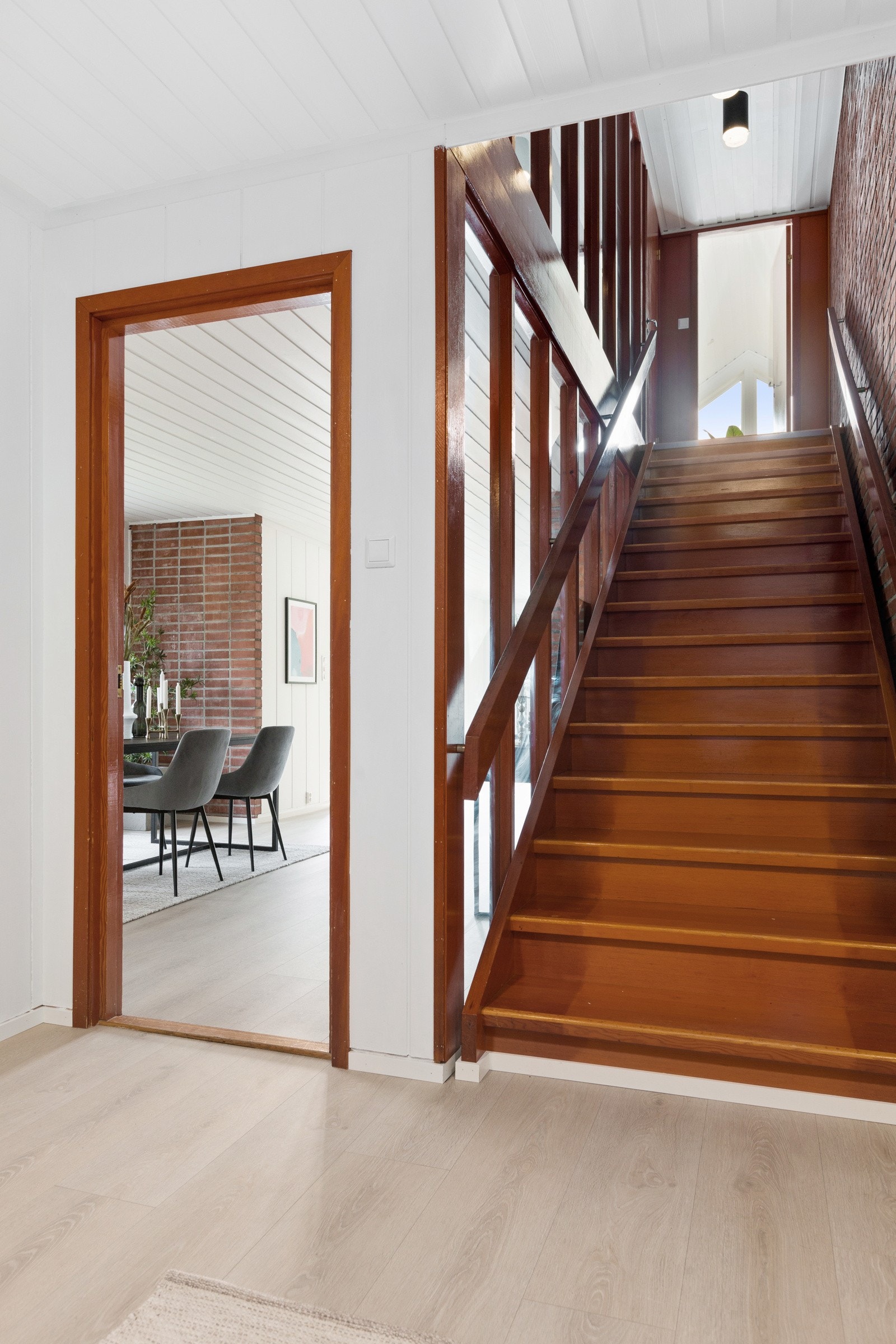 Innvendig er de aller fleste overflater i boligen skiftet ut, renovert eller overflatebehandlet. Det er bygget et