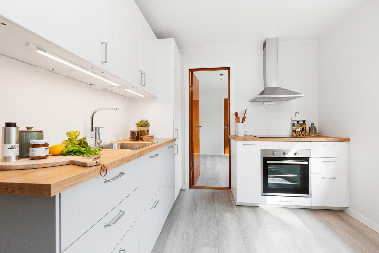 videre inngang til to boder og godt med skap- og oppbevaringsplass i kneveggene.
