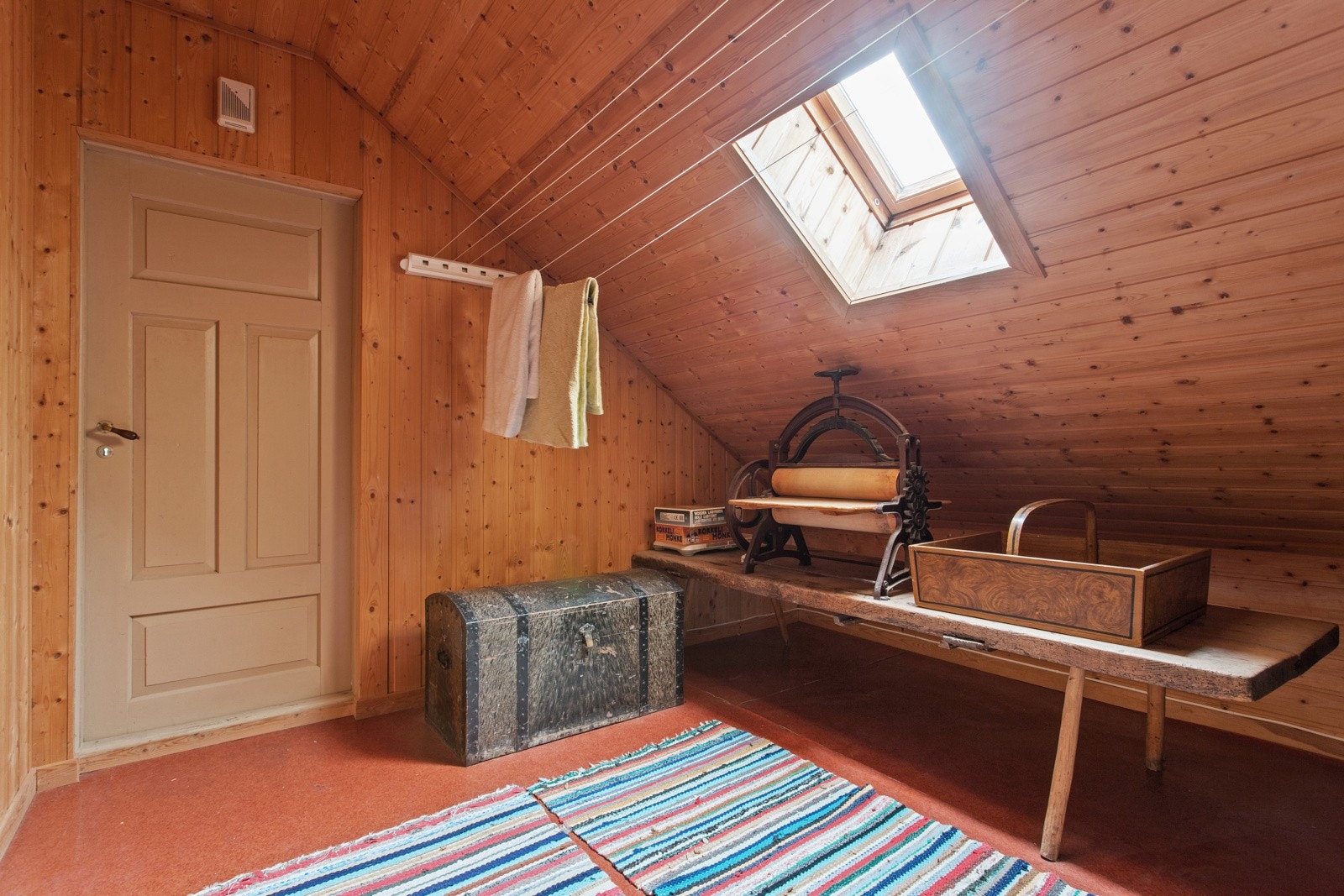 Tresperrer type sal, kaldt loft isolert mot oppholdsrom. Det er spor etter stripet borebille og vepsebol i