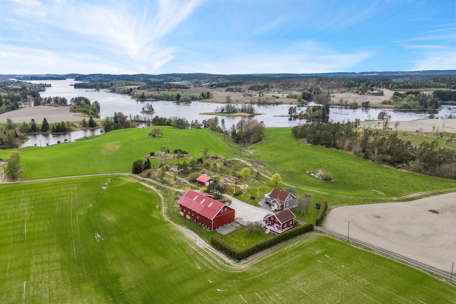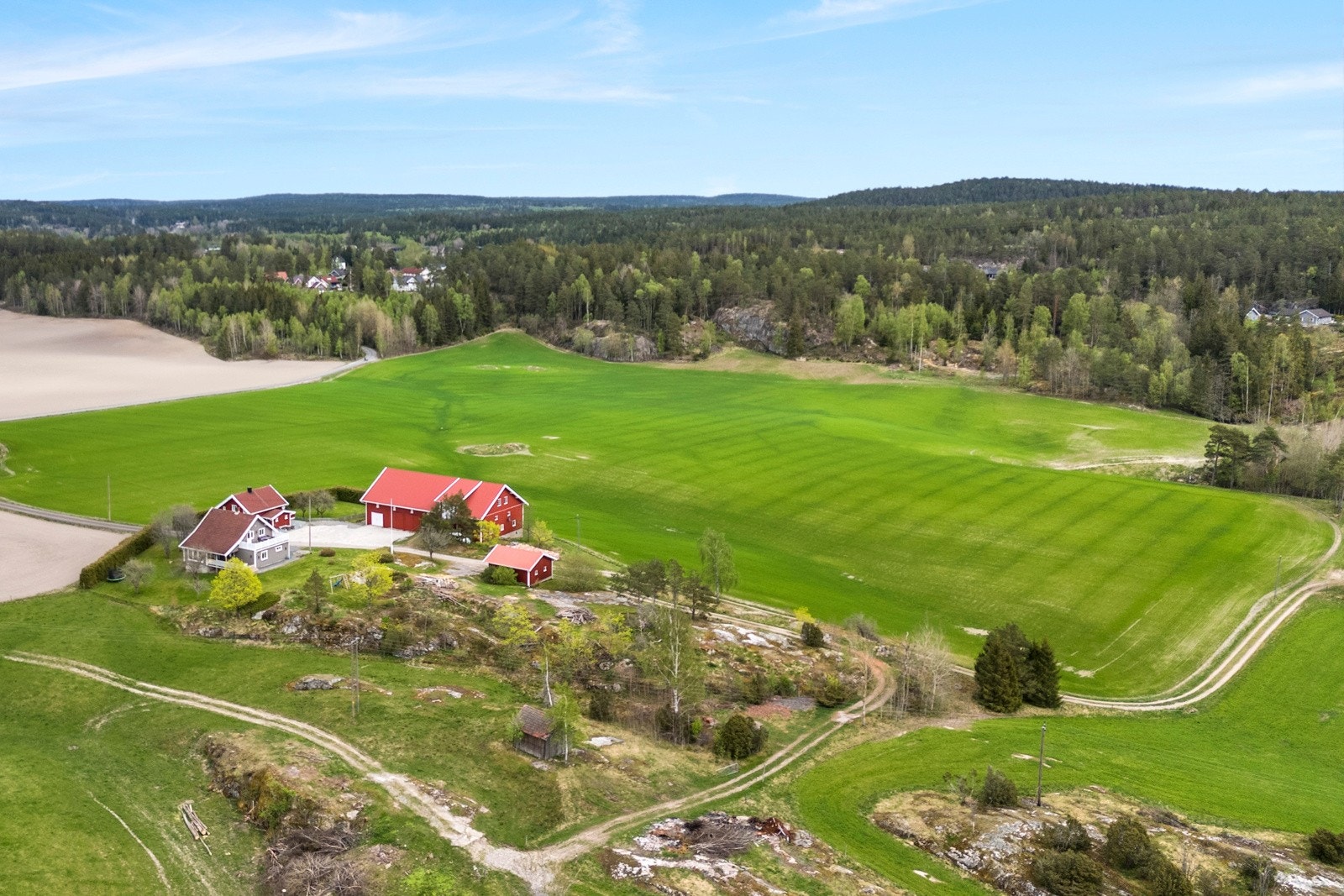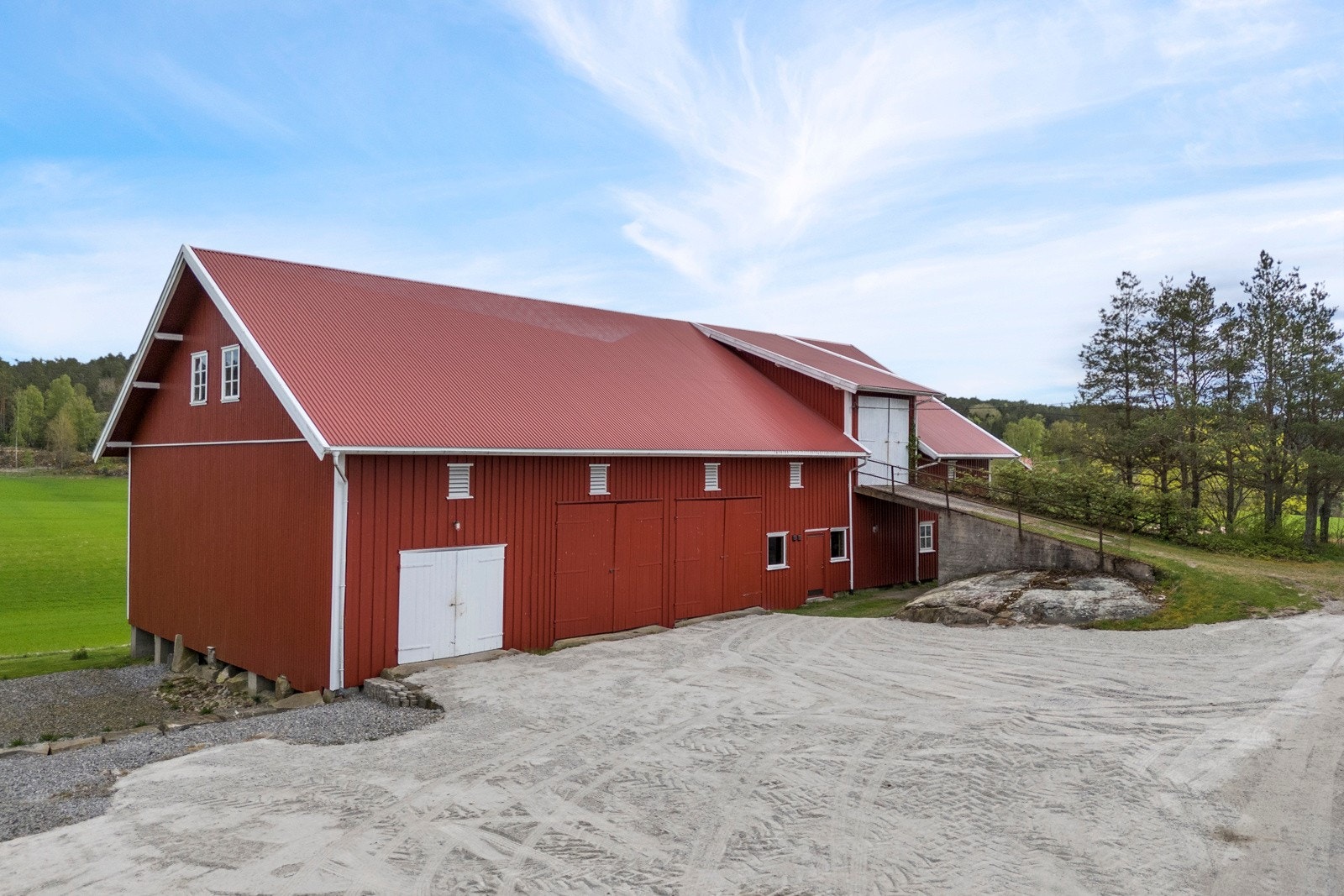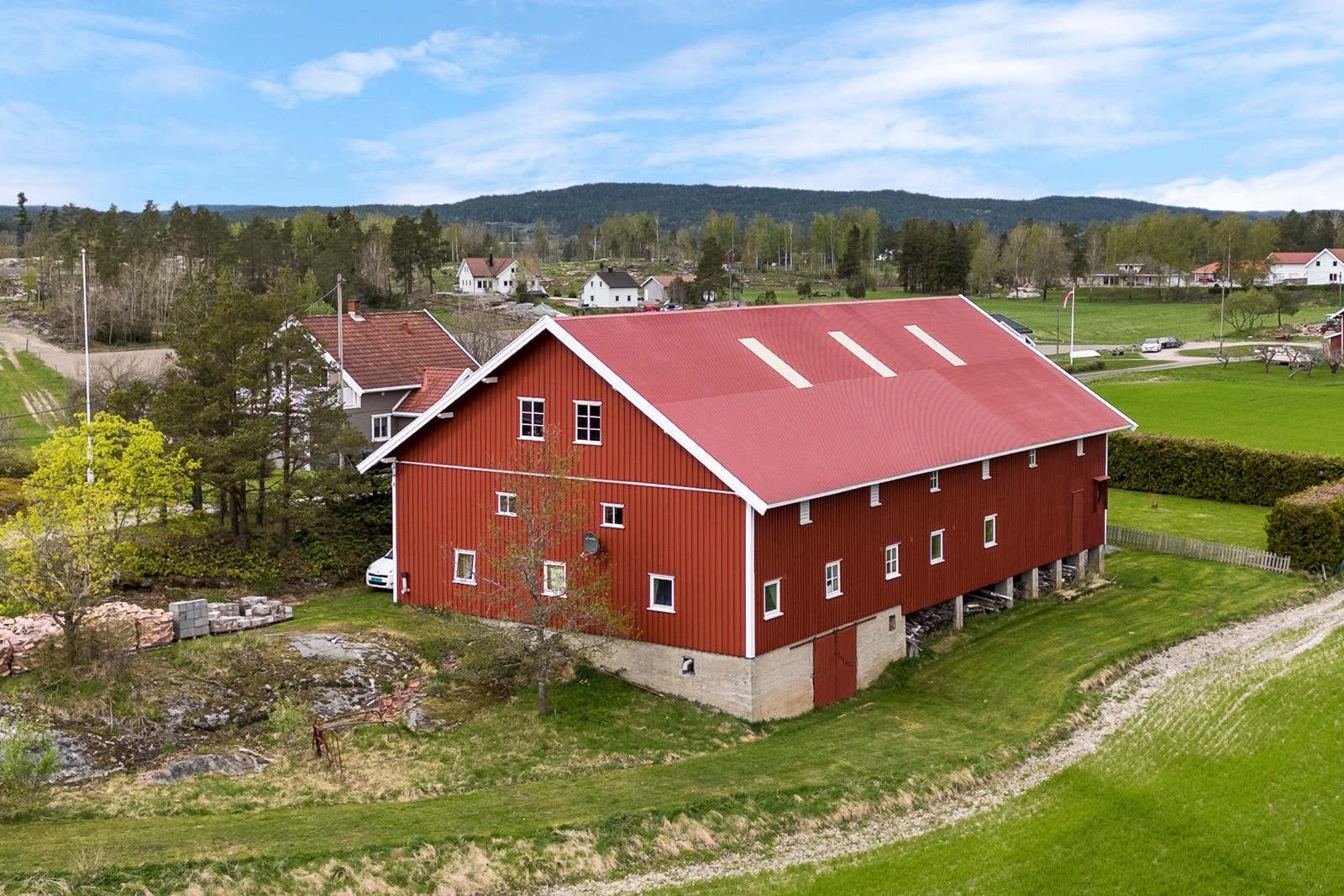 Eiendommen består av flere velholdte og moderne bygninger, inkludert våningshus, låve, garasje og en kårbolig med utleiemuligheter som kan bli en god inntektskilde.
