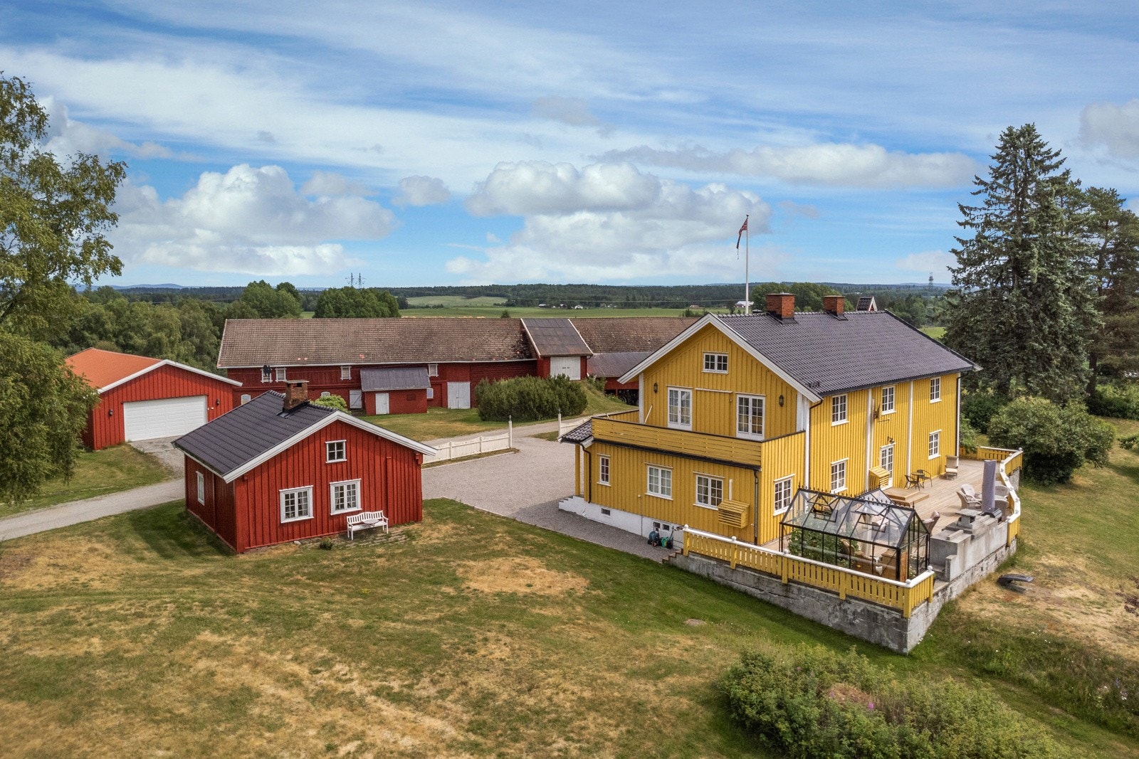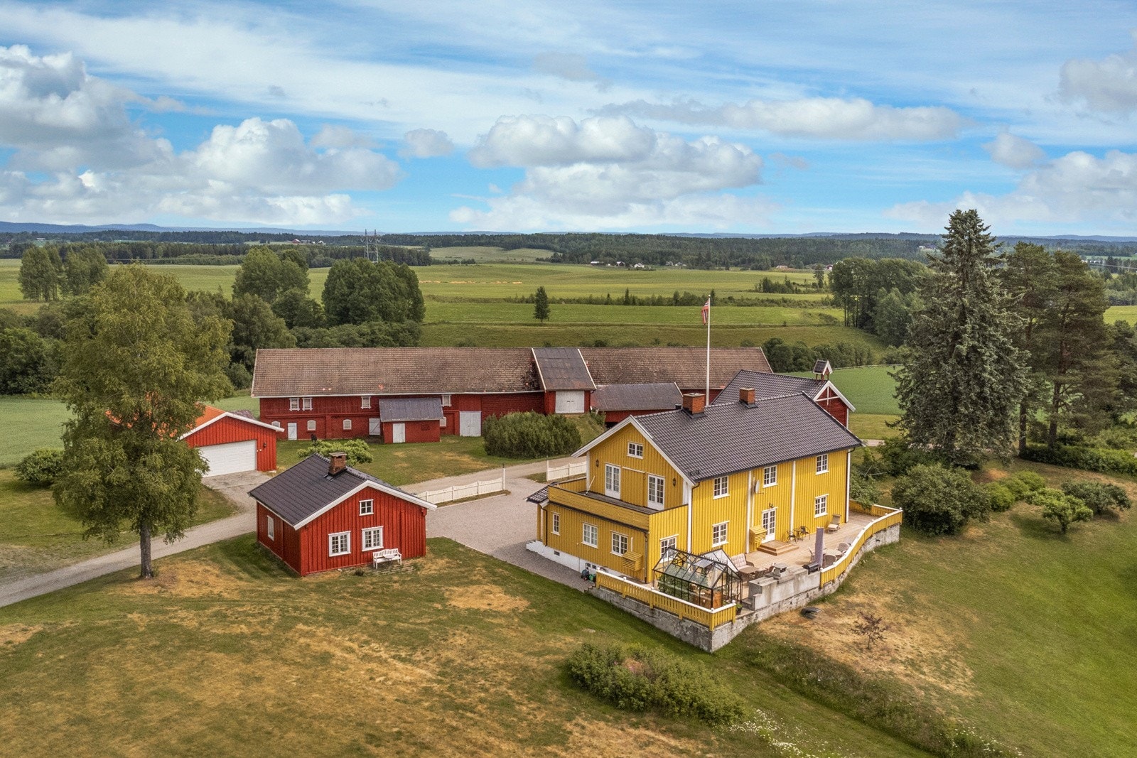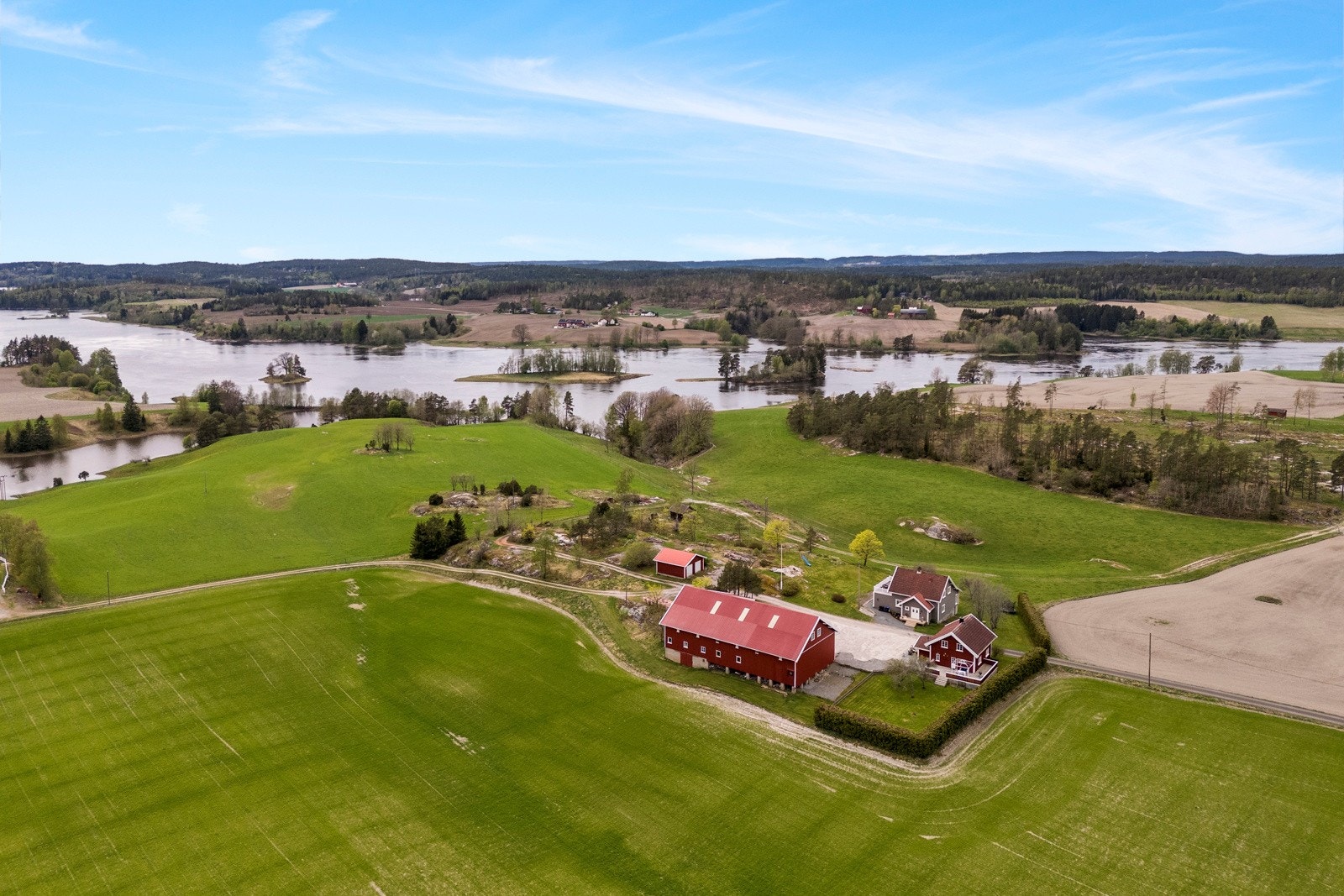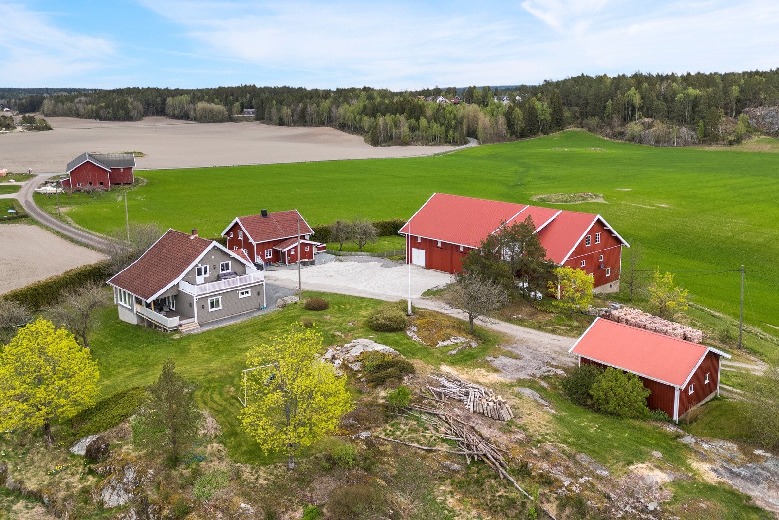 Eiendommen består av flere velholdte og moderne bygninger, inkludert våningshus, låve, garasje og en kårbolig med utleiemuligheter som kan bli en god inntektskilde.