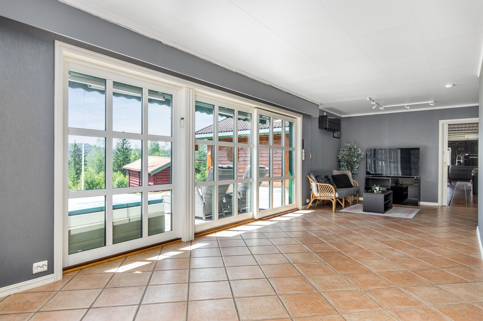 Eiendommen har både sørøst- og nordvendte arealer og ligger i hellende terreng på mellom 50 til 350