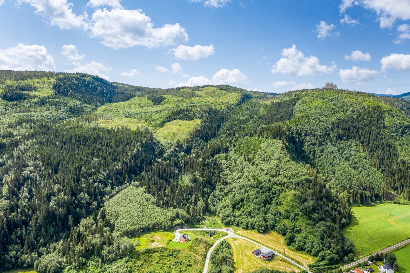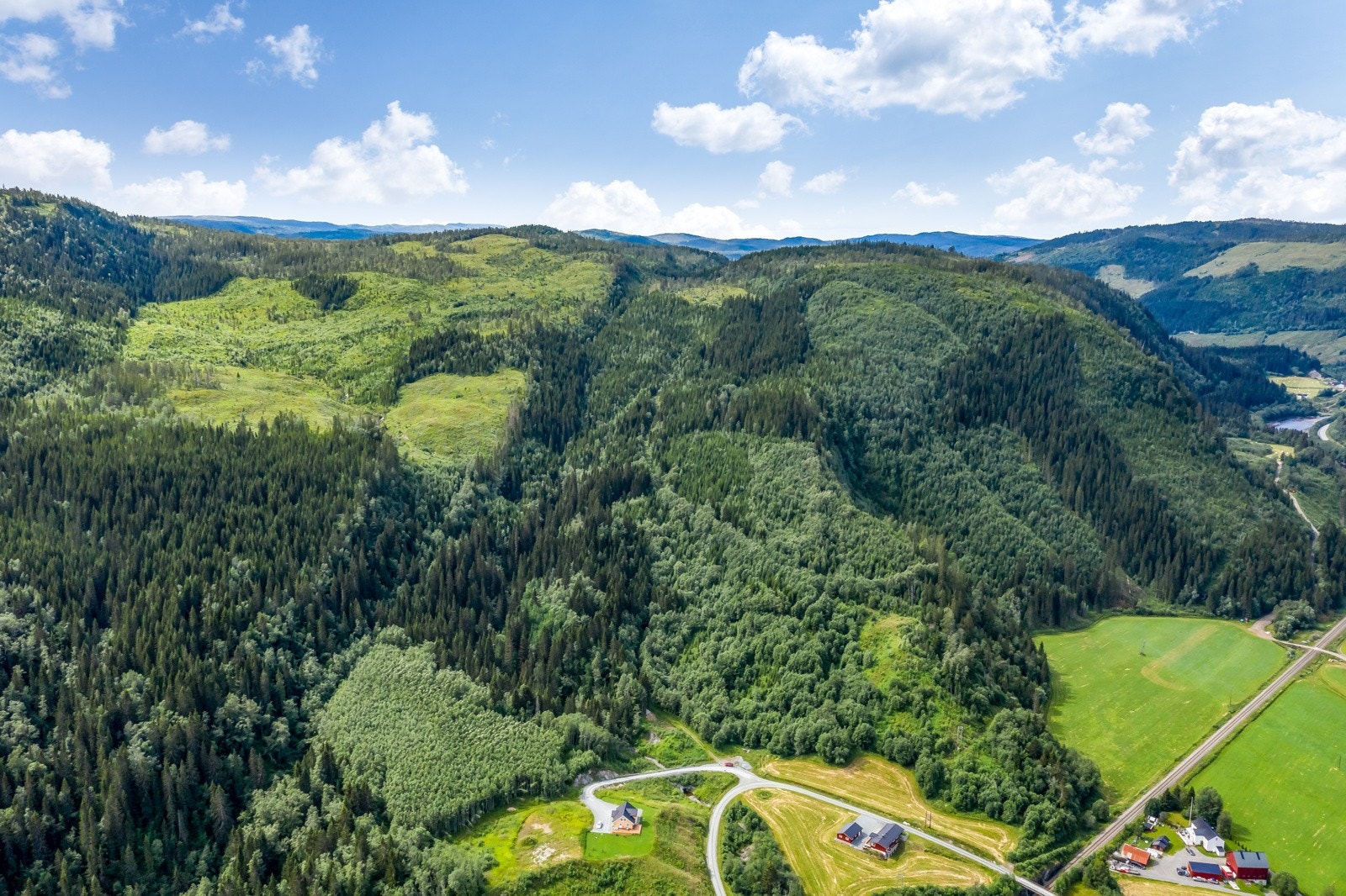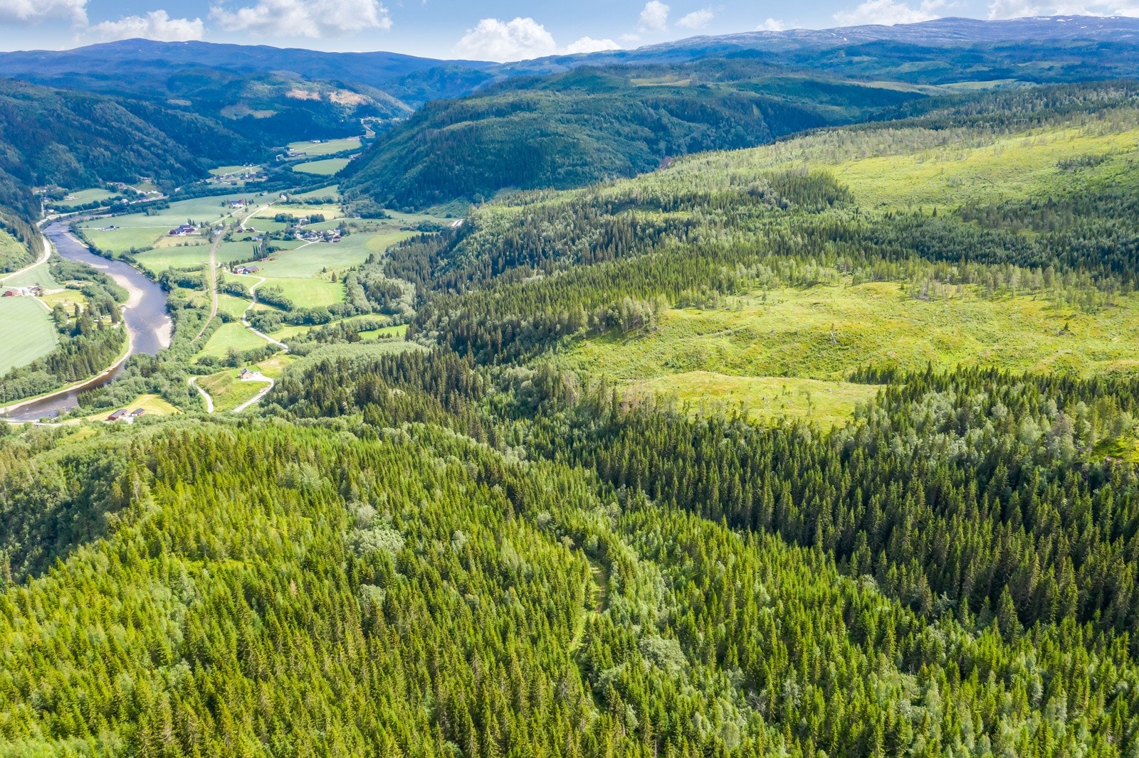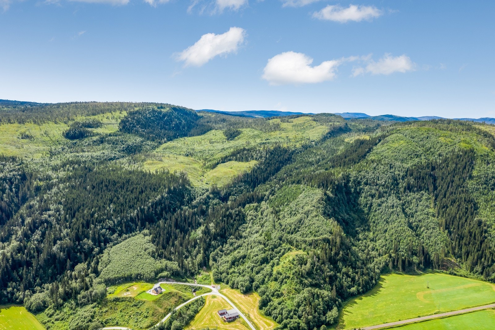 hogstmoden skog og mye plantefelt.