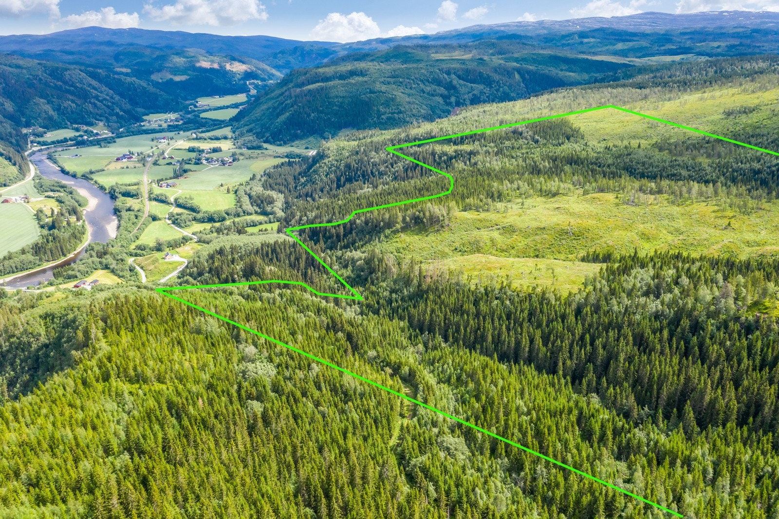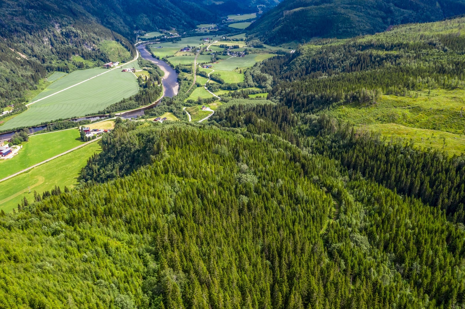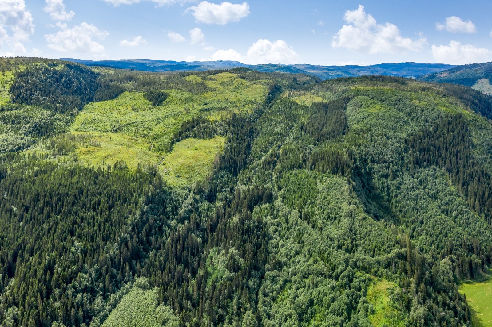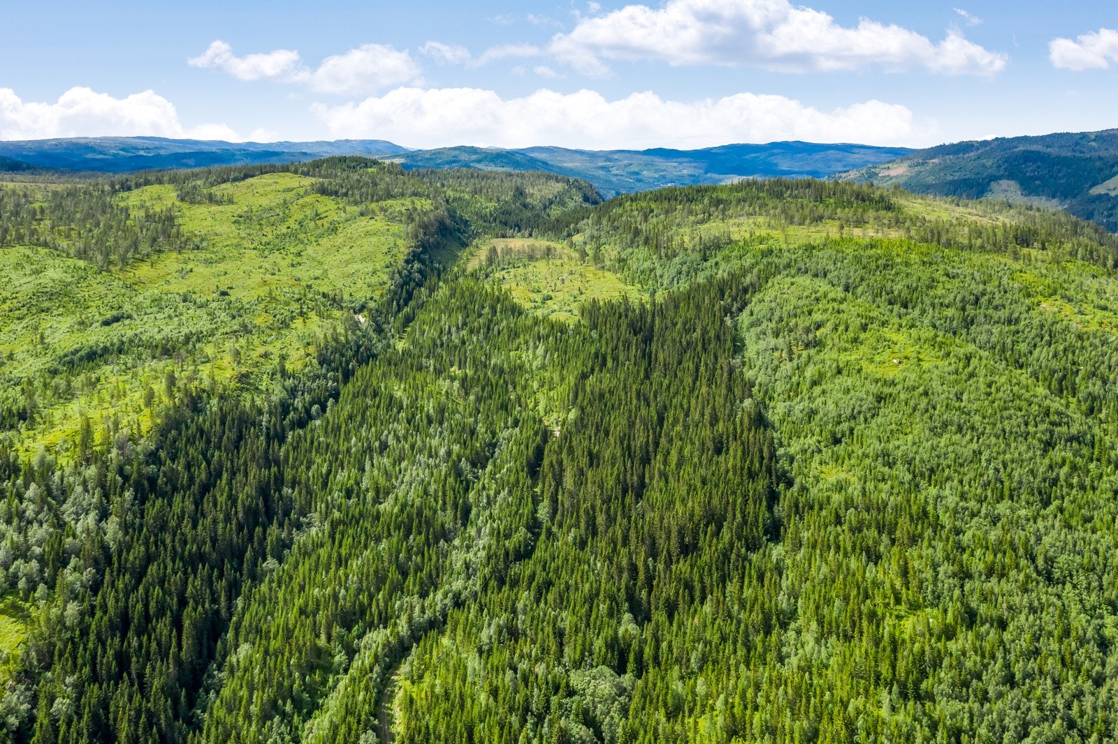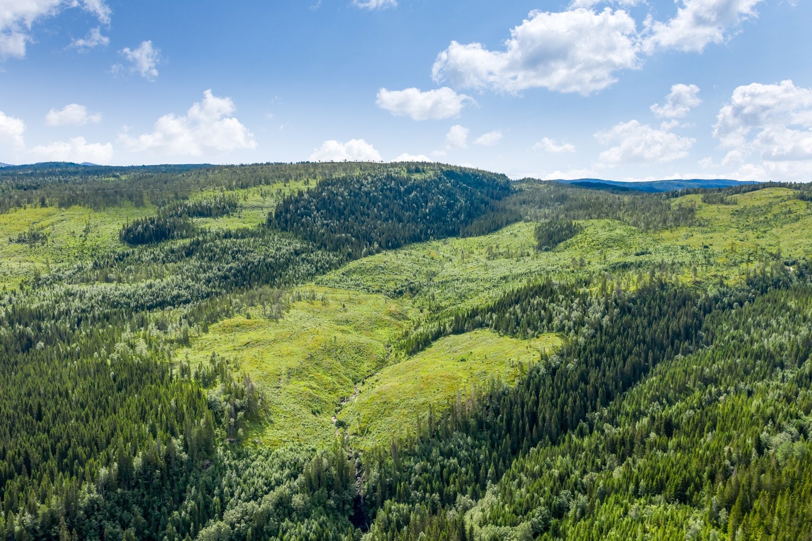 hogstmoden skog og mye plantefelt.