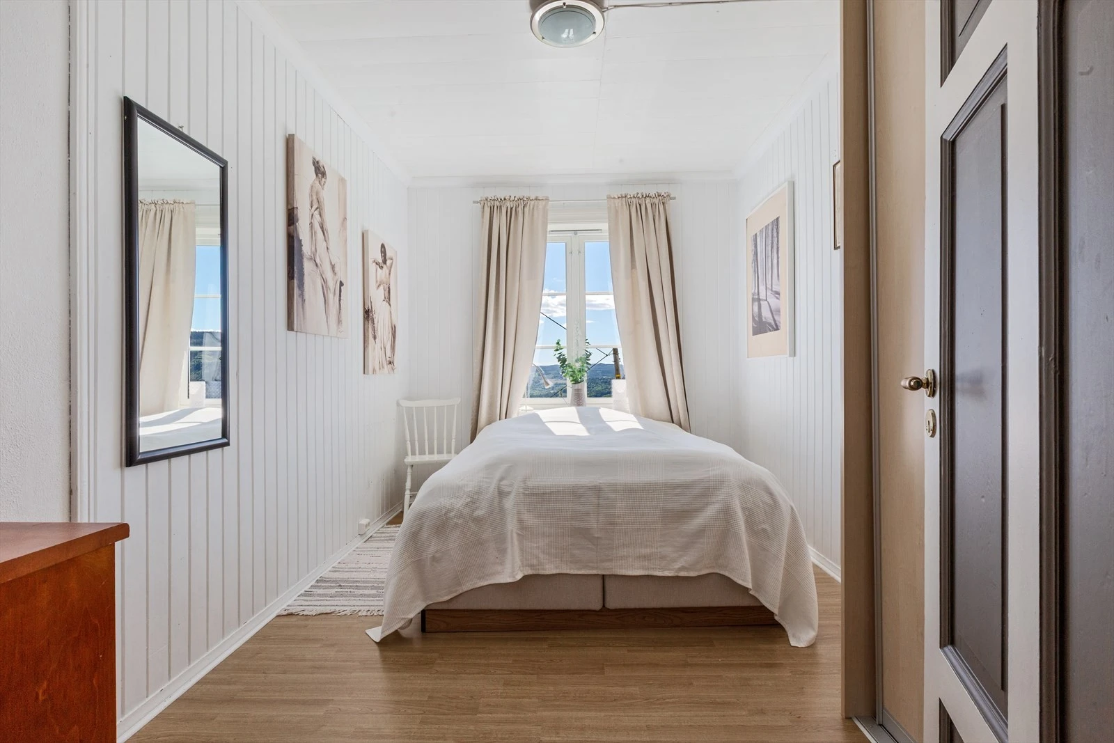 I andre etasje, er det til sammen fire soverom, bad og toalettrom. Alle soverommene har god størrelse.