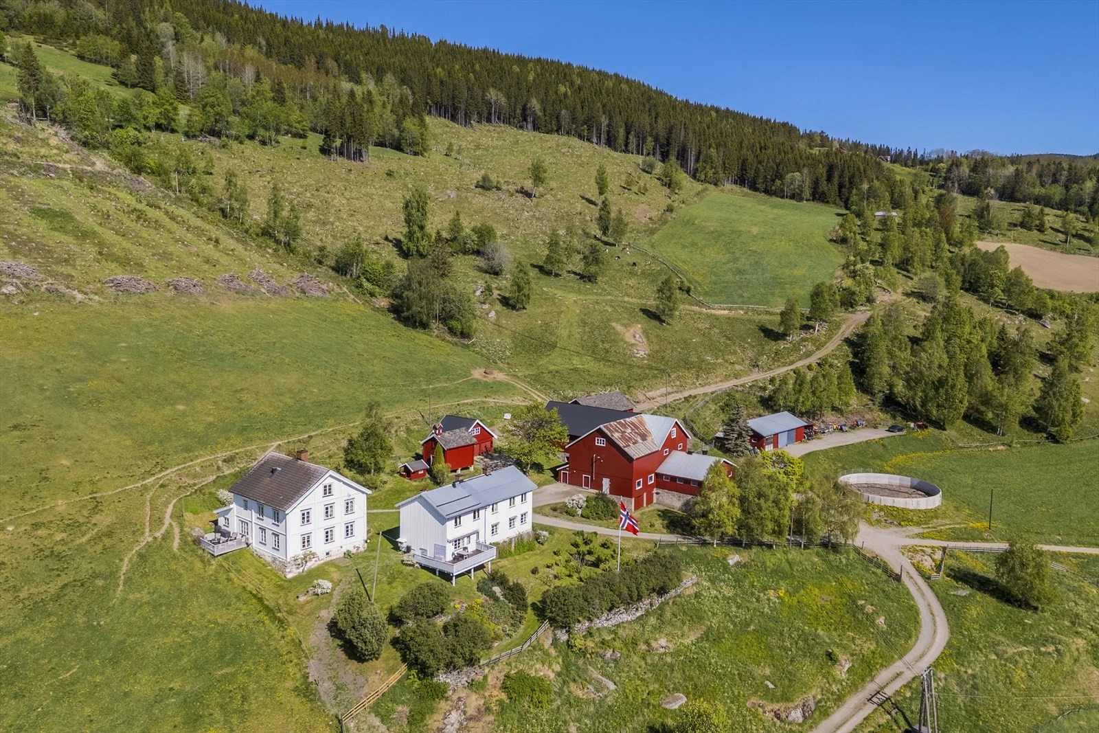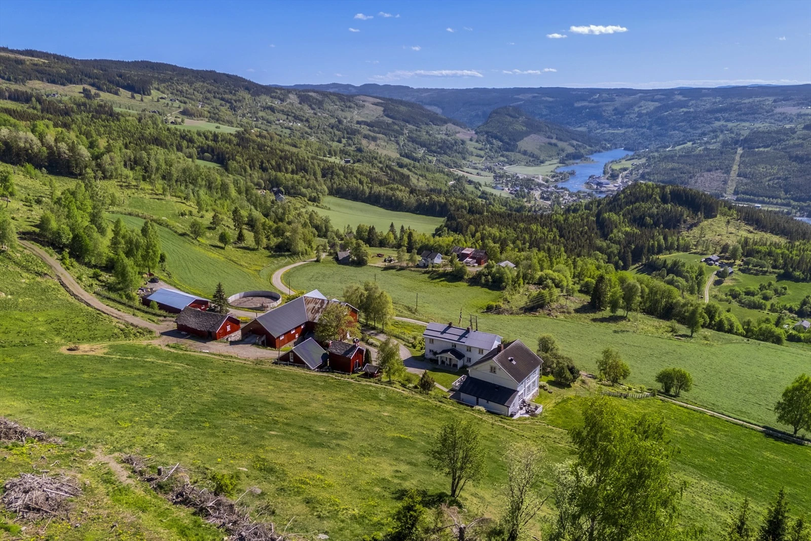 Her kommer du til en velholdt gård i full produksjon som ligger helt for seg selv. En fredelig plass med en flott beliggenhet øverst i lia.