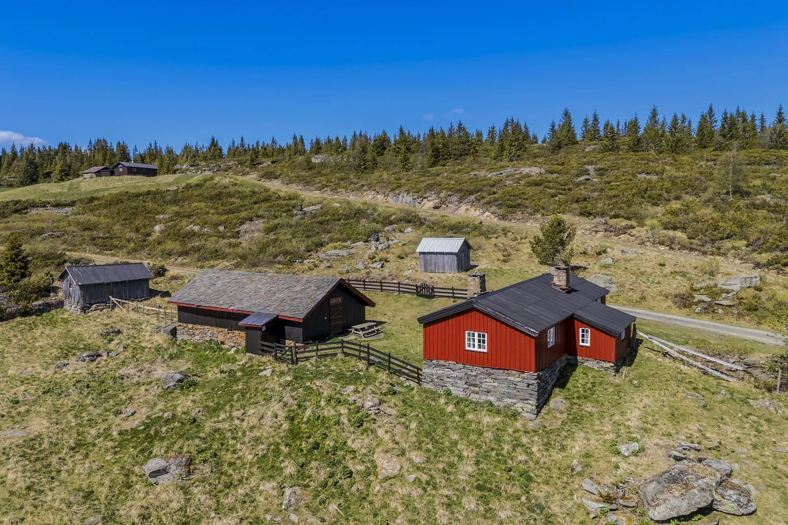 Bygningsmassen består av hovedbygning, sidebygning-/kårbolig, låve, stabbur, garasje, redskapsskjul, vedskjul, dukkestue, uthus og gjødsellager. Sæter med flere bygninger. Det er ca. 10 min. opp til setra i fra gården.