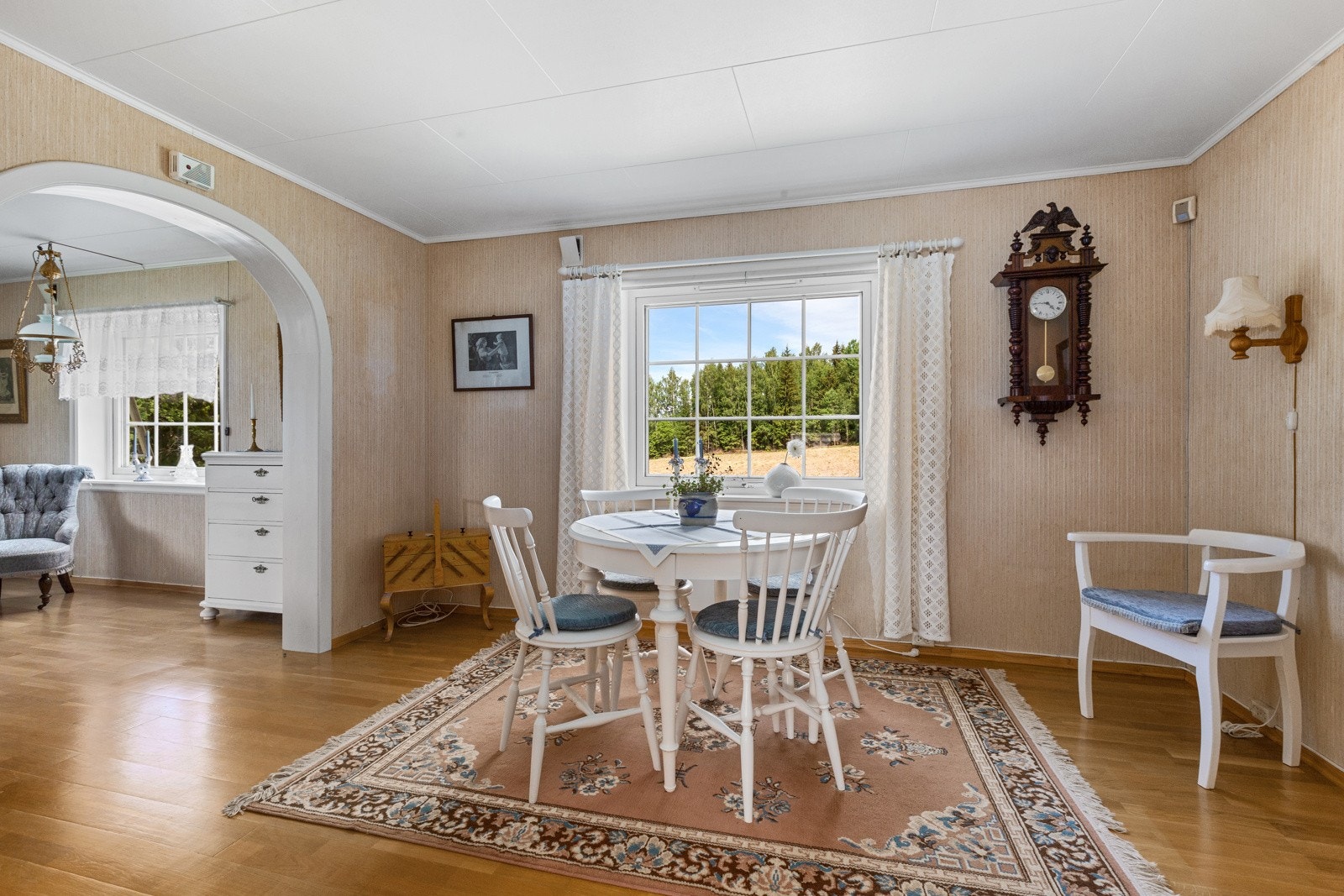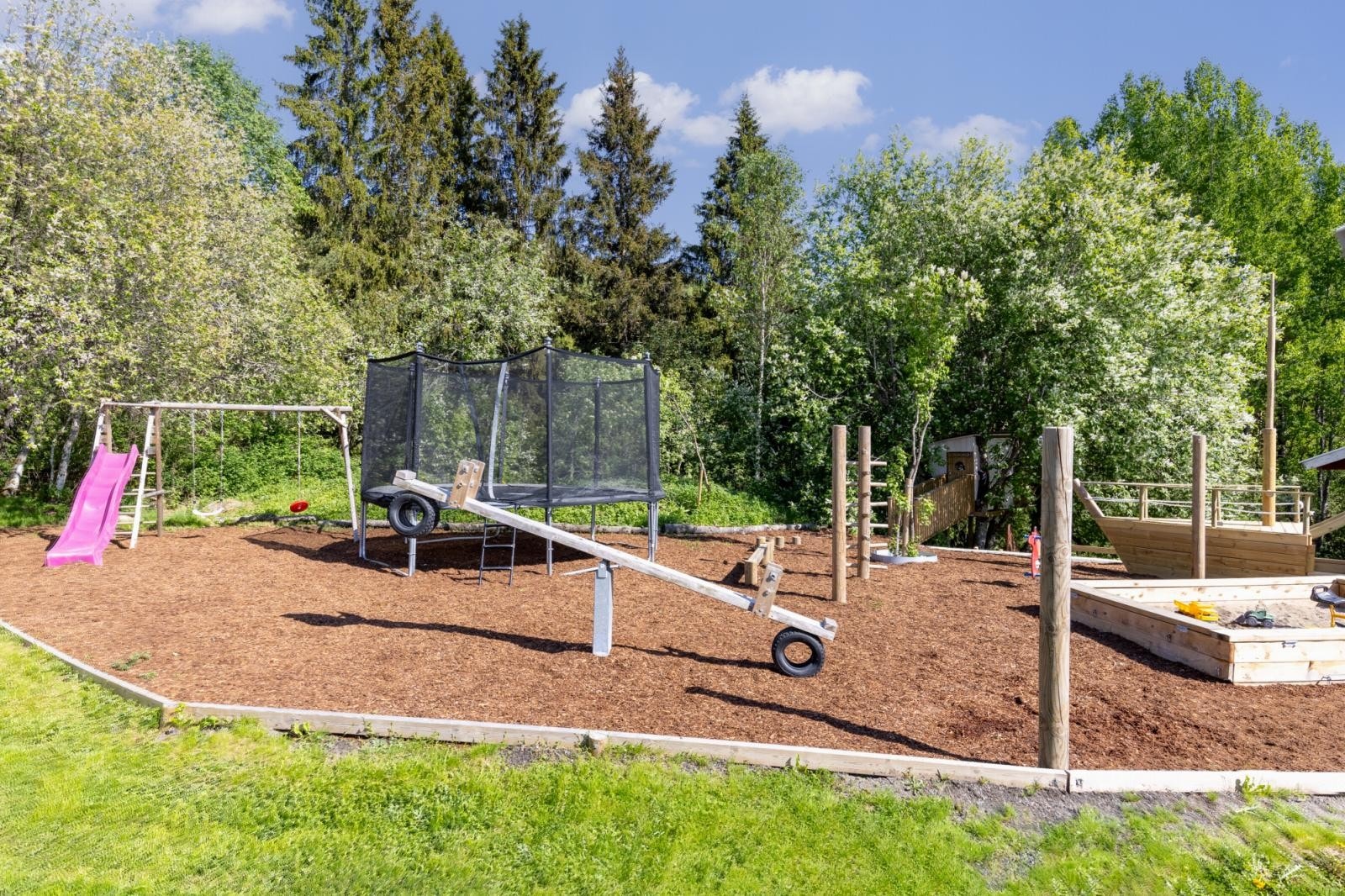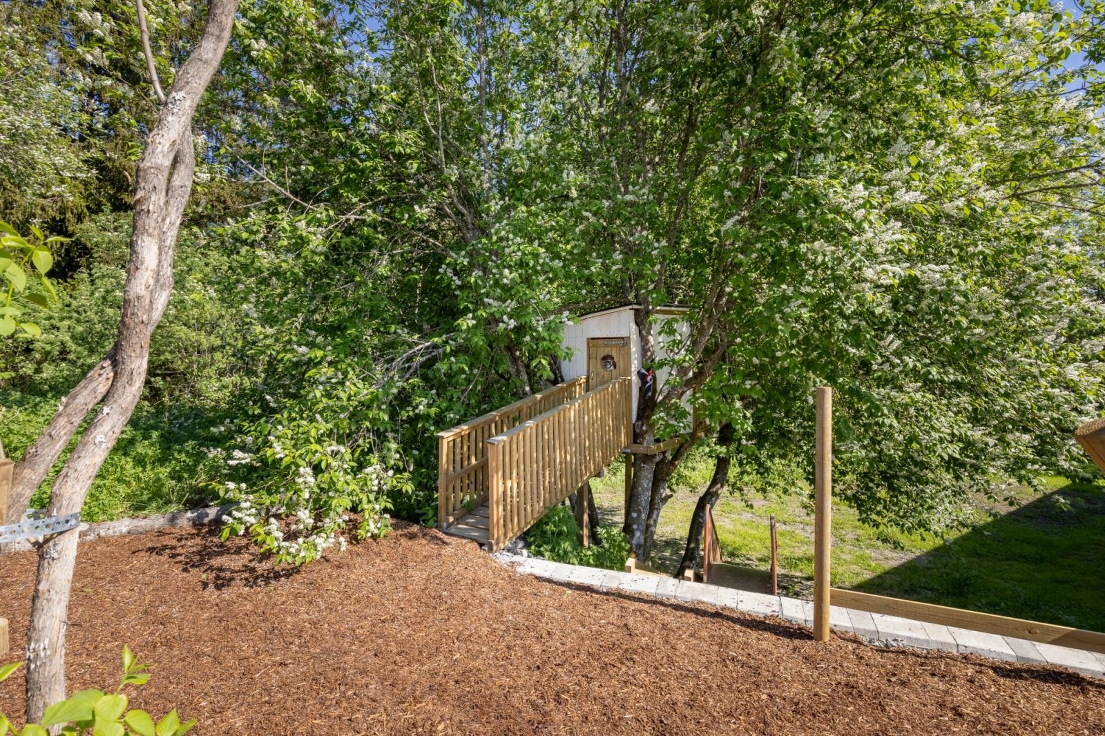 Eiendommen har en privat beliggenhet oppe i skogkante med noe utsikt til omkringliggende landskap. Eiendommen har en beskyttet beliggenhet med turmuligheter rett utenfor døren.