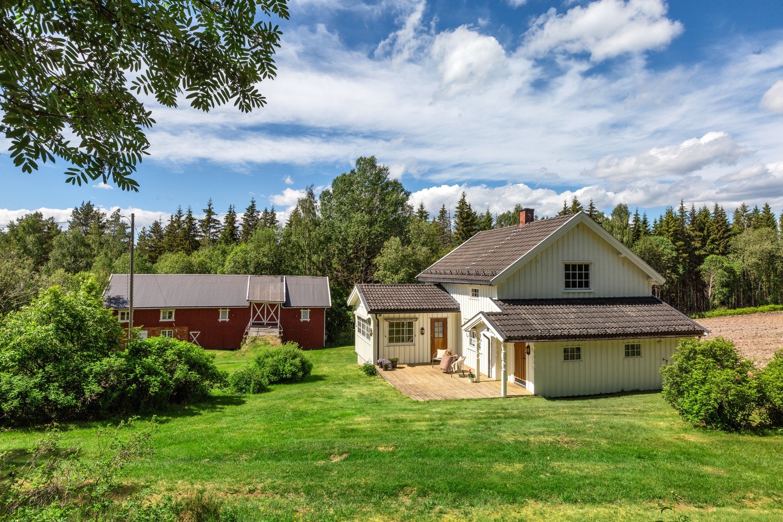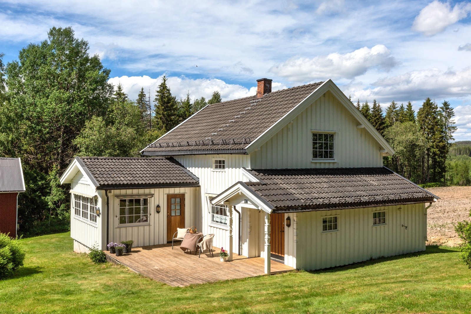 Hyggelig småbruk-/fritidseiendom i skogkanten på Skarnes | 36,2 daa totalt | 13 daa fulldyrka | 19,5 daa produktiv skog