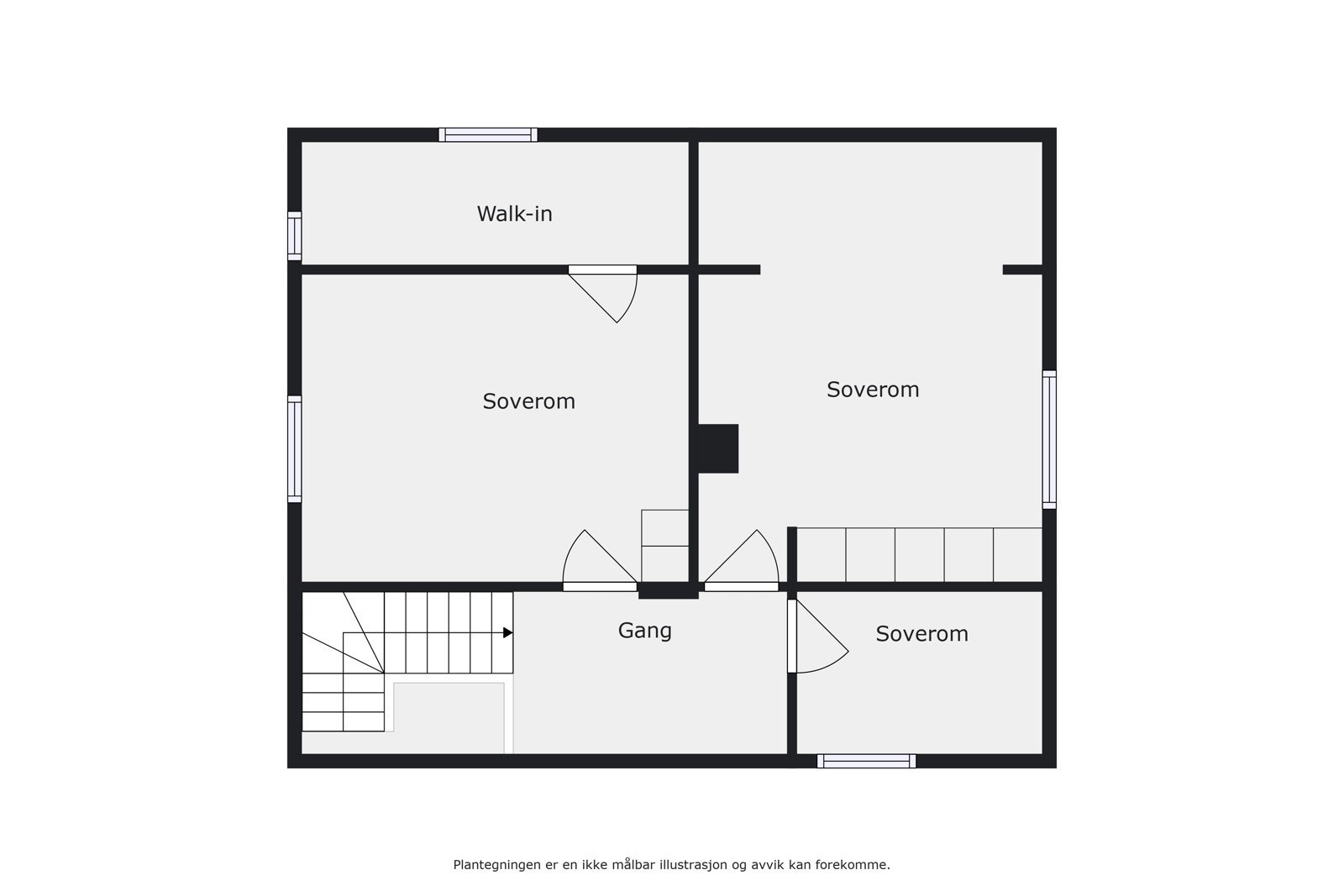 2. etasje: Gang, 3 soverom og kott.