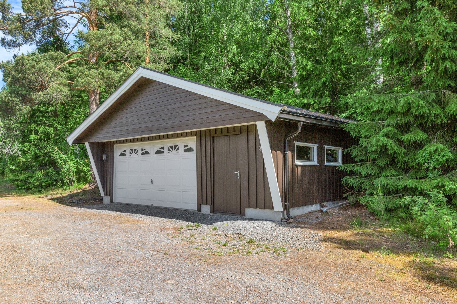 Leddheiseport i metall. Bygget har innlagt elektrisitet. Bygget er ikke tilstandsvurdert på linje med boligen og er derfor ikke gitt tilstandsgrad. Garasjen fremstår med normal standard for denne type bygg. Bygget fremstår som vedlikeholdt, men løpende vedlikehold må påregnes.