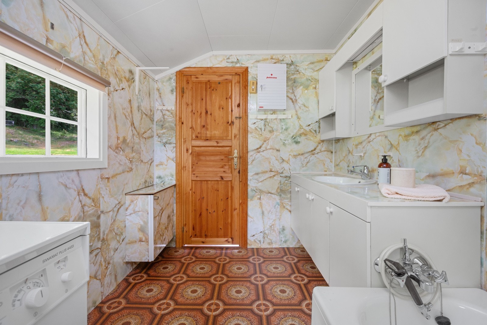 Det er stedvis noe skade/ slitasje på overflater på dører.