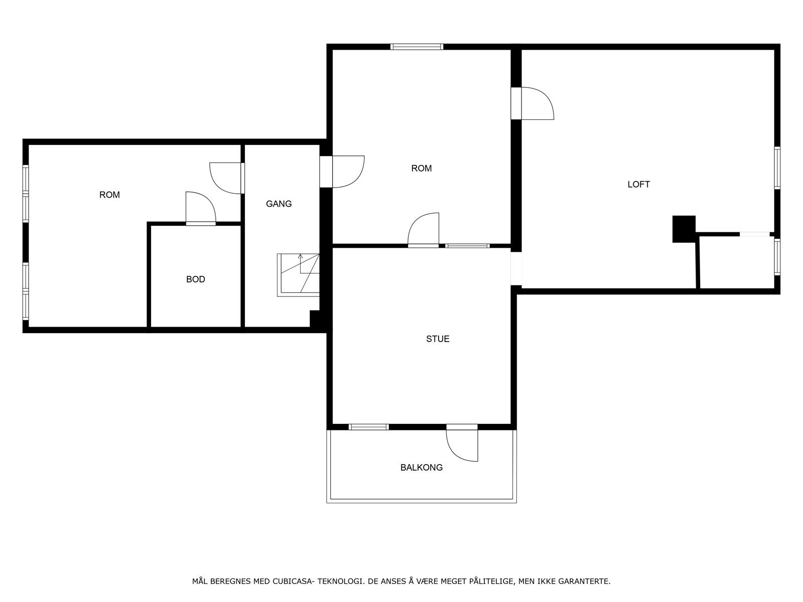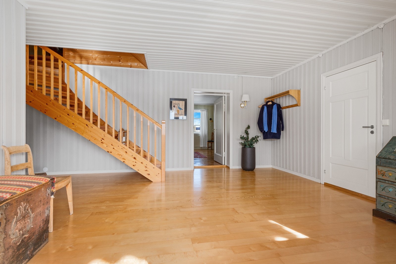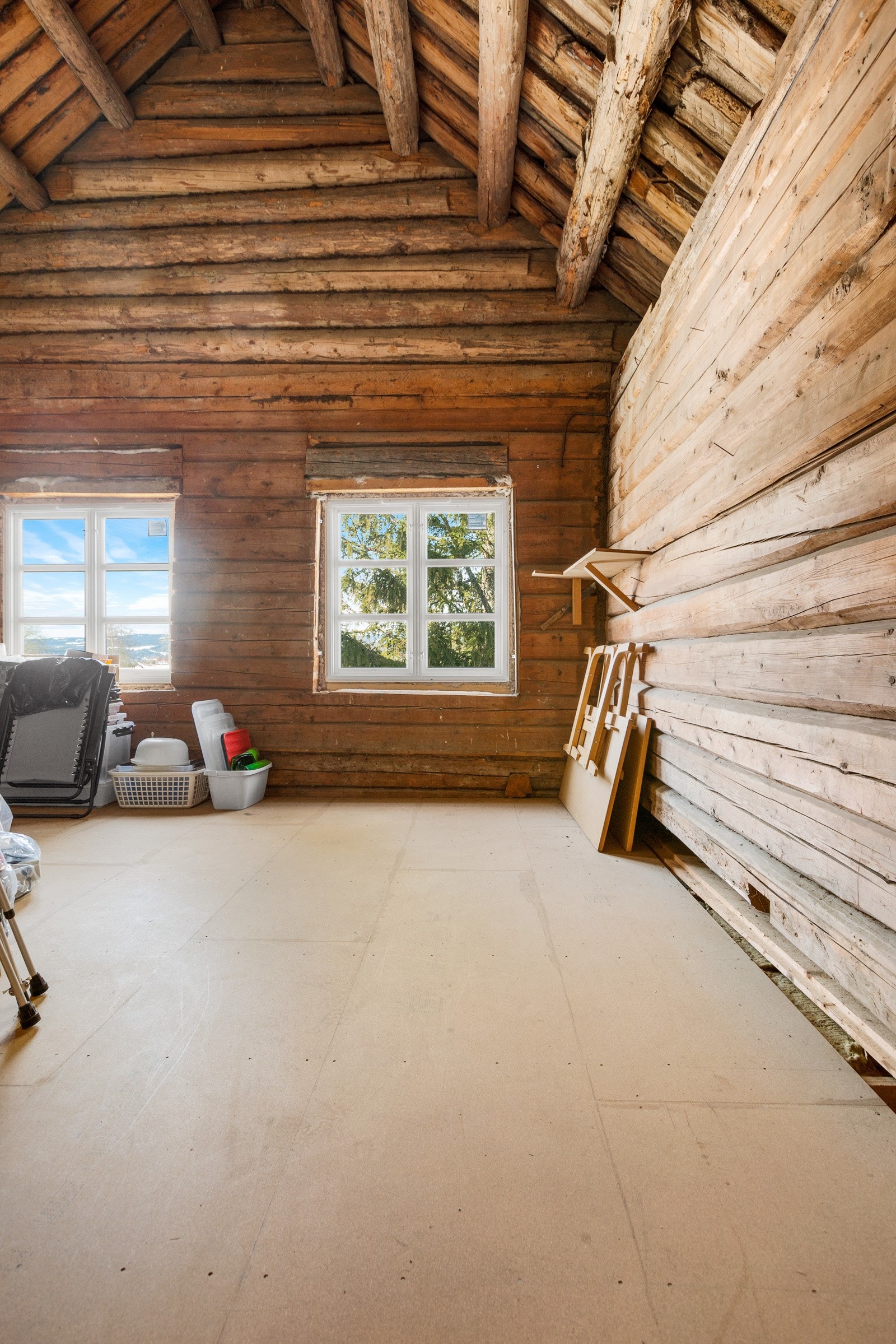 2. etasje primærrom: Gang, hobbyrom og loftstue. Sekundærrom: Et stort uinnredet rom og 2 boder