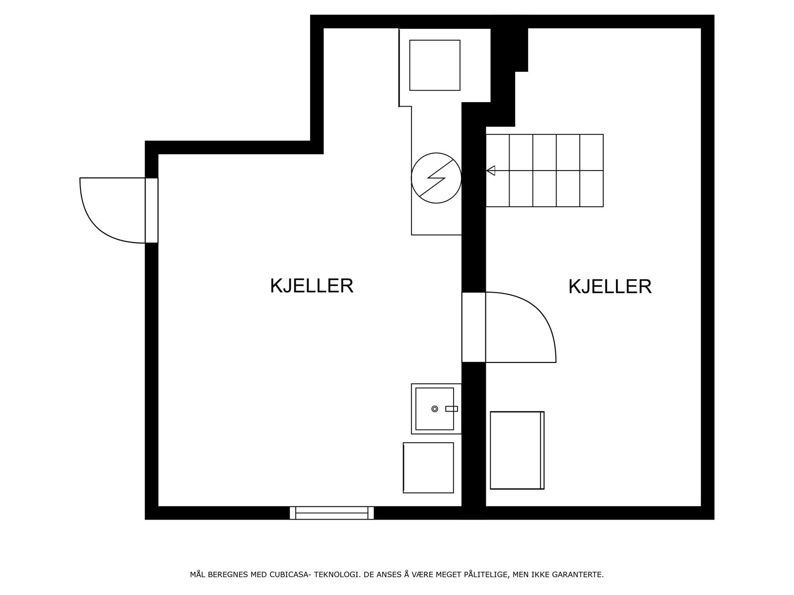 Kjeller: Lagerrom og rom for fyrkjel og vv. bereder. Et uinnredet rom med jordgulv.