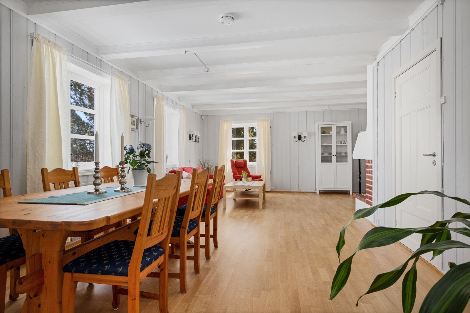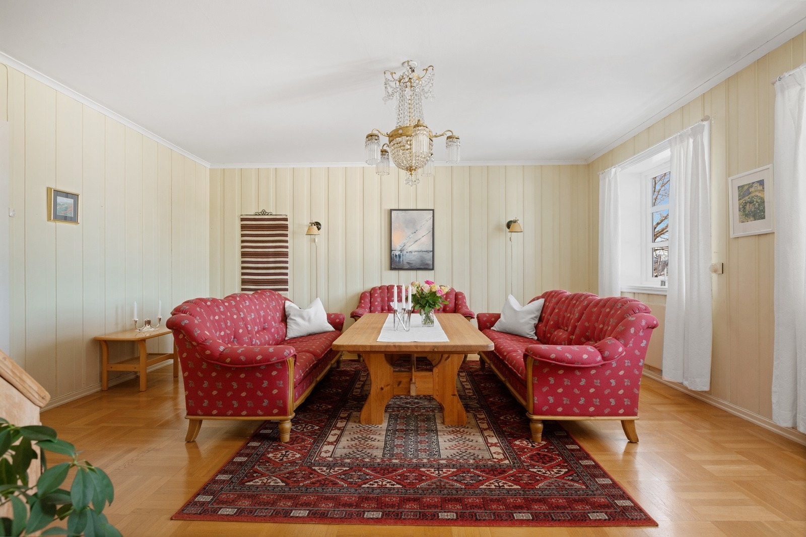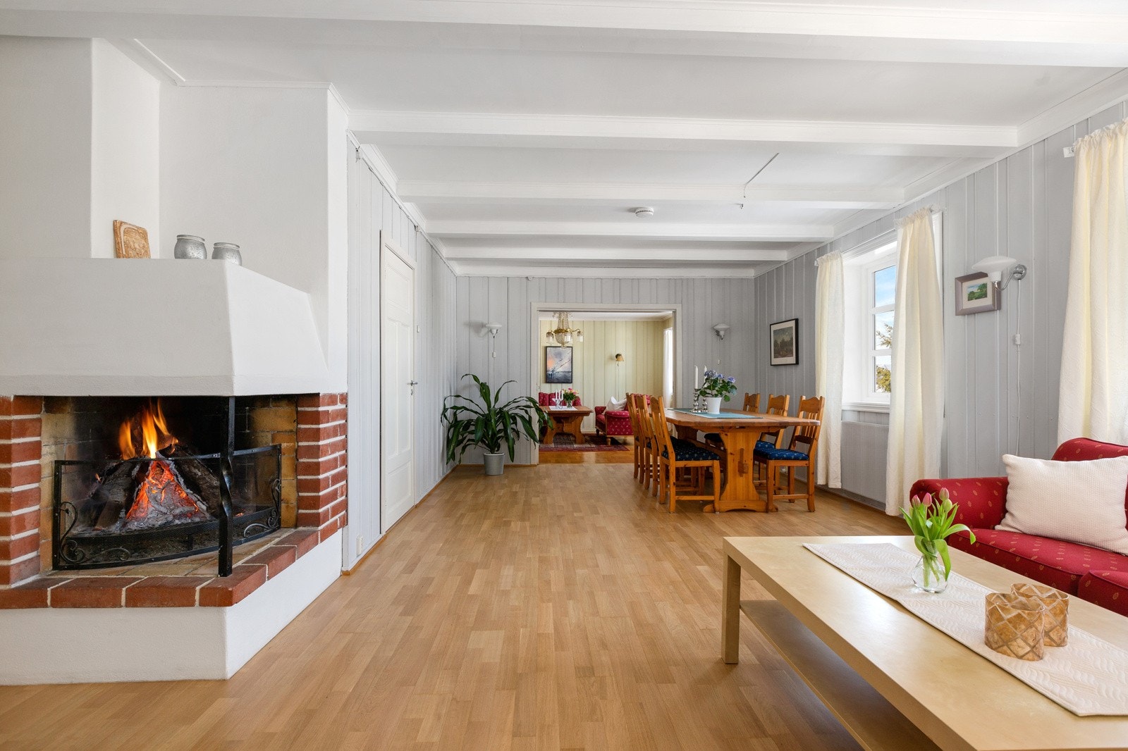 Boligens 1. etasje består av store gode oppholdsrom i form av to store stuer og et større kjøkkenrom. Som i et tradisjonelt våningshus har også kjøkkenet på Engelstad en god størrelse med stor spiseplass, en større kjøkkeninnredning og full utsikt til gårdstunet. Fra kjøkkenet har man videre adgang til boligens sekundærinngang som leder ut til en overbygget skiferbelagt sitteplass og vindfang. Hovedinngangen til bygningen er forseggjort og gir inntrykk av at dette er gård av god størrelse. Fra hovedinngangen har man adgang til boligens oppholdsrom i form av stuer og kjøkken. Det er også adgang til 2. etasje og soveromsfløyen fra hallen. Etasjen inneholder i tillegg fire soverom av god størrelse, to baderom, separat wc og bod – og gangplass. I andre etasje finnes loftstue, hobbyrom og et stort uinnredet areal til syd.