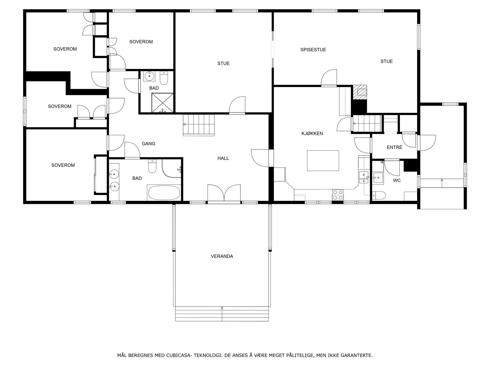 1. etasje primærrom: Kjøkken, 2 stuer, 2 baderom, separat wc, 4 soverom, hall og vindfang. Sekundærrom: Bod