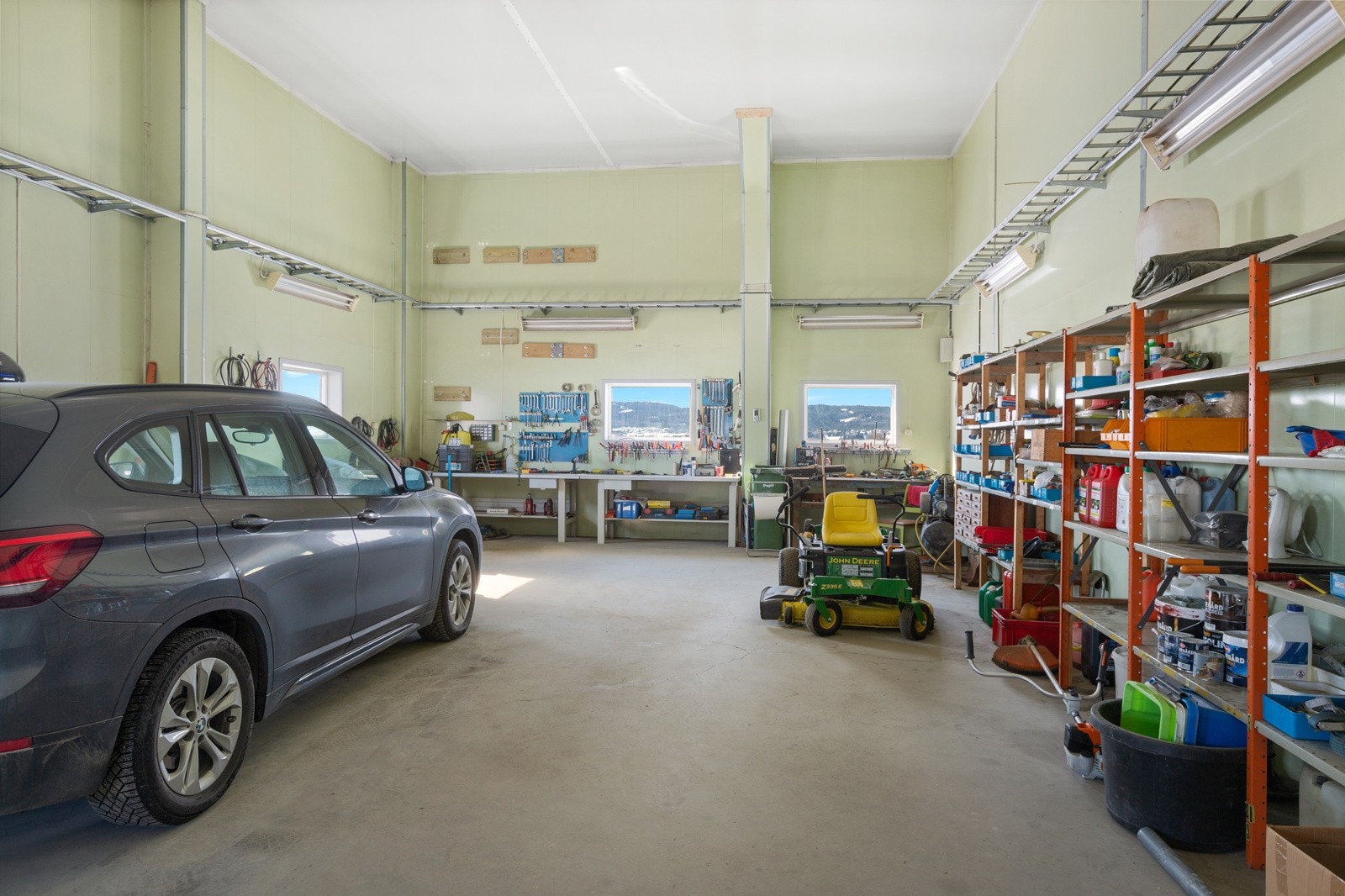 1. etasje: Isolert verksted, isolert redskapsrom, vognskjul og korntørke.