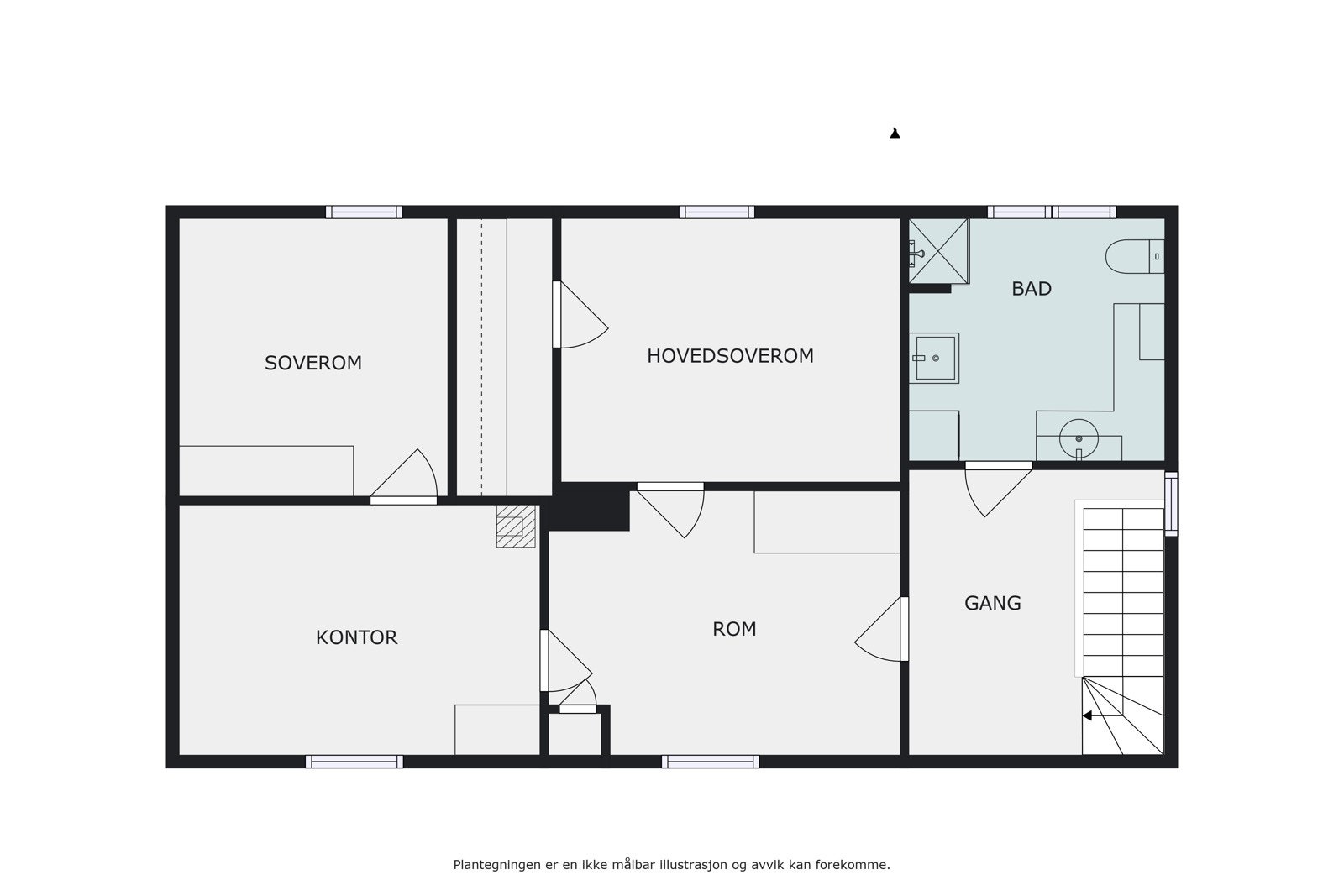 2. etasje primærrom: Gang, 4 soverom og bad. Sekundærrom: Bod