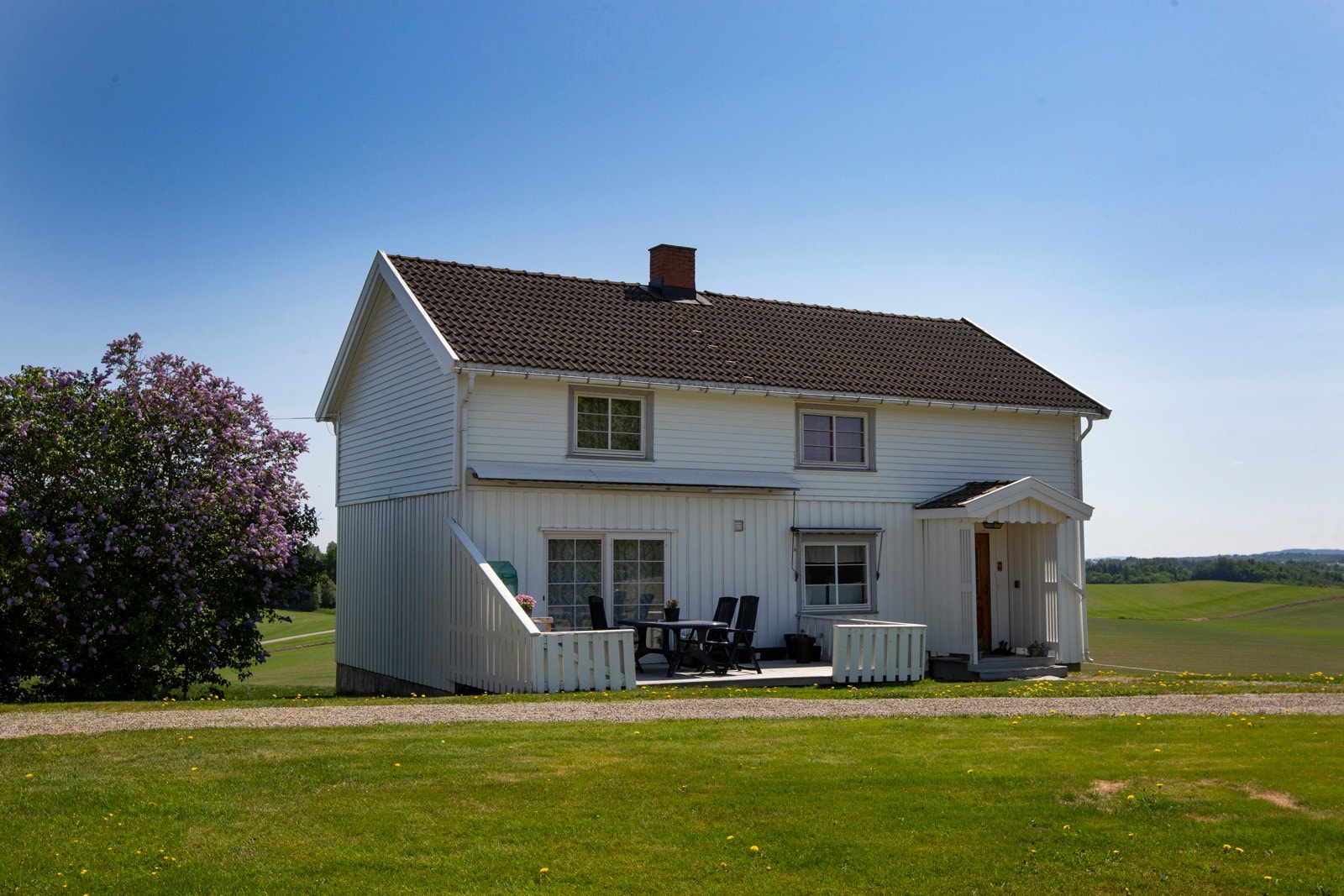 Eiendommen ble oppført i 1952. Opprinnelig er eiendommen et gammelt tømmerhus som ble flyttet til eiendommen. Boligen er fundamentert på grunnmur i betong med støpt plate på mark. Det er observert sprekker i grunnmur og det foreligger ikke opplysninger ikke om byggegrunn eller drenering. Det må antas at boligen mangler moderne drensløsning. Nedløp fra takvann går forøvrig til rør i grunn. Det er påvist saltutslag i grunnmur og kapilæroppsug i kjellergulv. Yttervegger er ifølge takst oppført i bindingsverk. Det vil være naturlig å anta at det er en kombinasjon av tømmer og bindingsverk i ytterveggene, da boligen opprinnelig var et tømmerbygg. Utvendig er bygningen kledd med stående tømmermannspanel. Det er observert ufagmessig arbeide, slitasje på kledning og manglende lufting. Det er saltakkonstruksjon på bygningen men den er ikke tilgjengelig for innvendig inspeksjon. Det bør etableres mulighet for å inspisere kaldtloftet og takkonstruksjonen fra innsiden da dette er å anse som en kritisk konstruksjon å kunne etterse. Takkonstruksjonen må settes til tilstandsgrad 3 på grunn av manglende mulighet for inspeksjon. Utvendig er taket tekket med betongtakstein. Det er observert mosedannelse på deler av taket. Nedløp, renner og beslag er i plastbelagt stål.