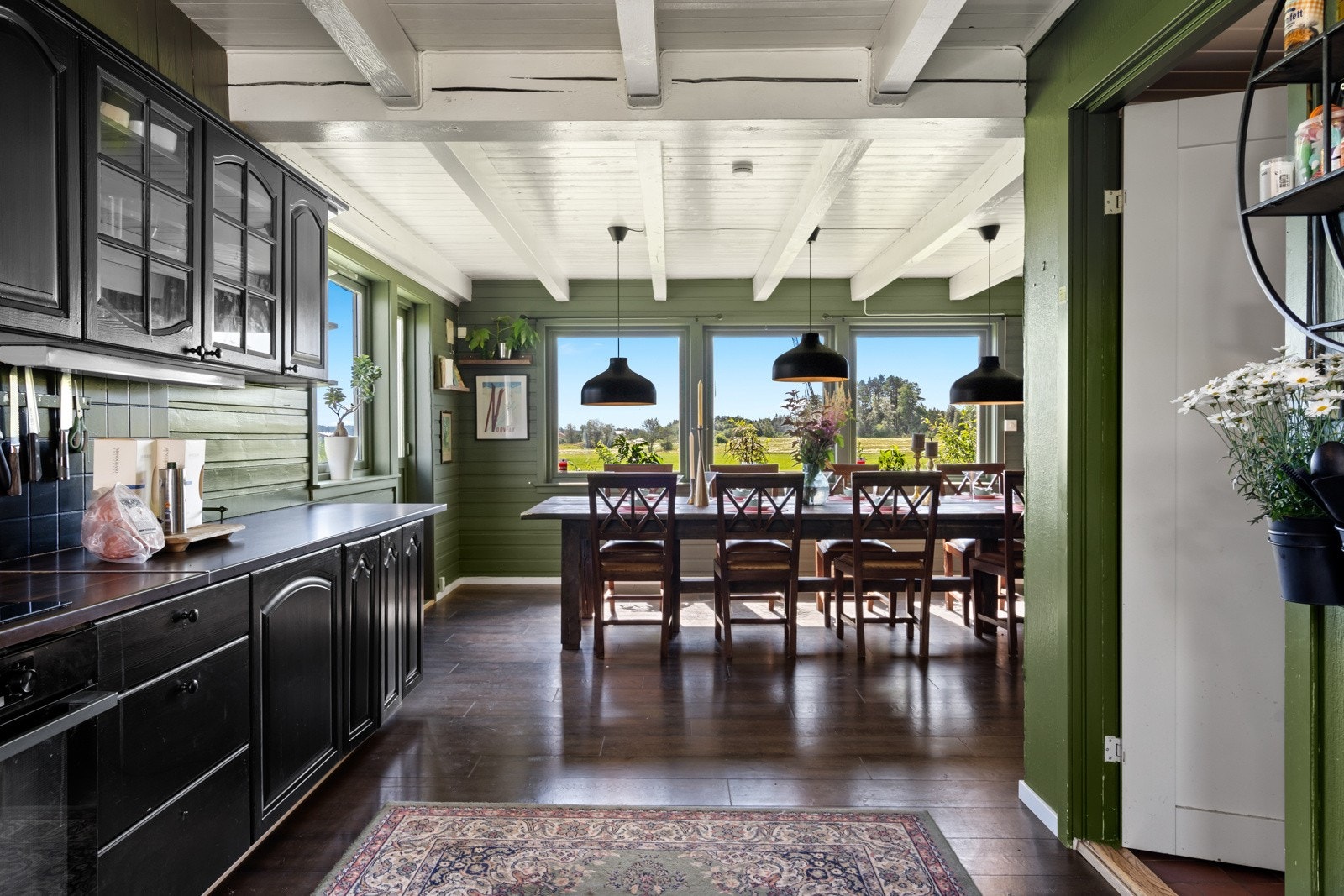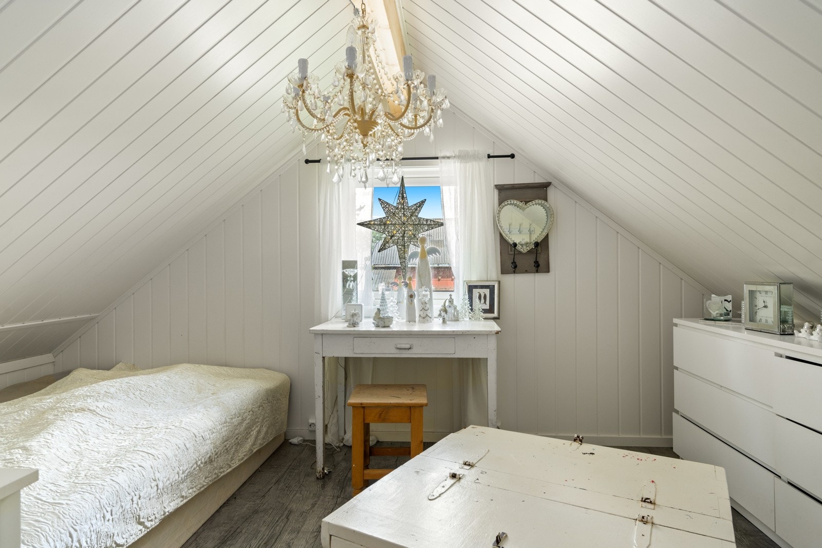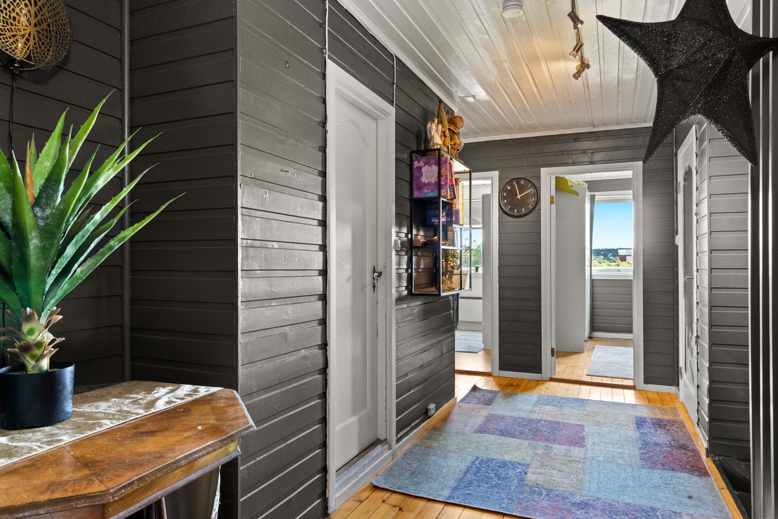 Innvendig har boligen malte fyllingsdører.
