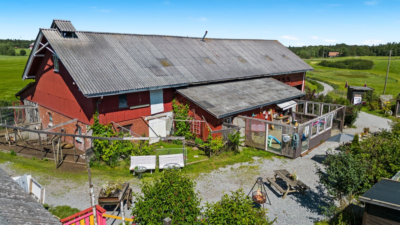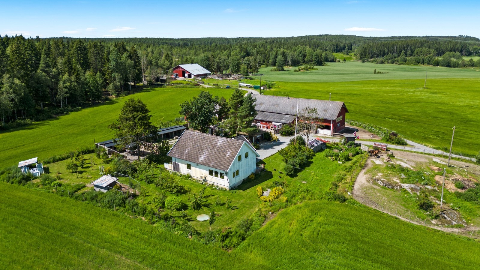 I tillegg er det fjøs, gårdsbutikk/redskapshus, hundegård m/utestue, grillhytte og gapahuk