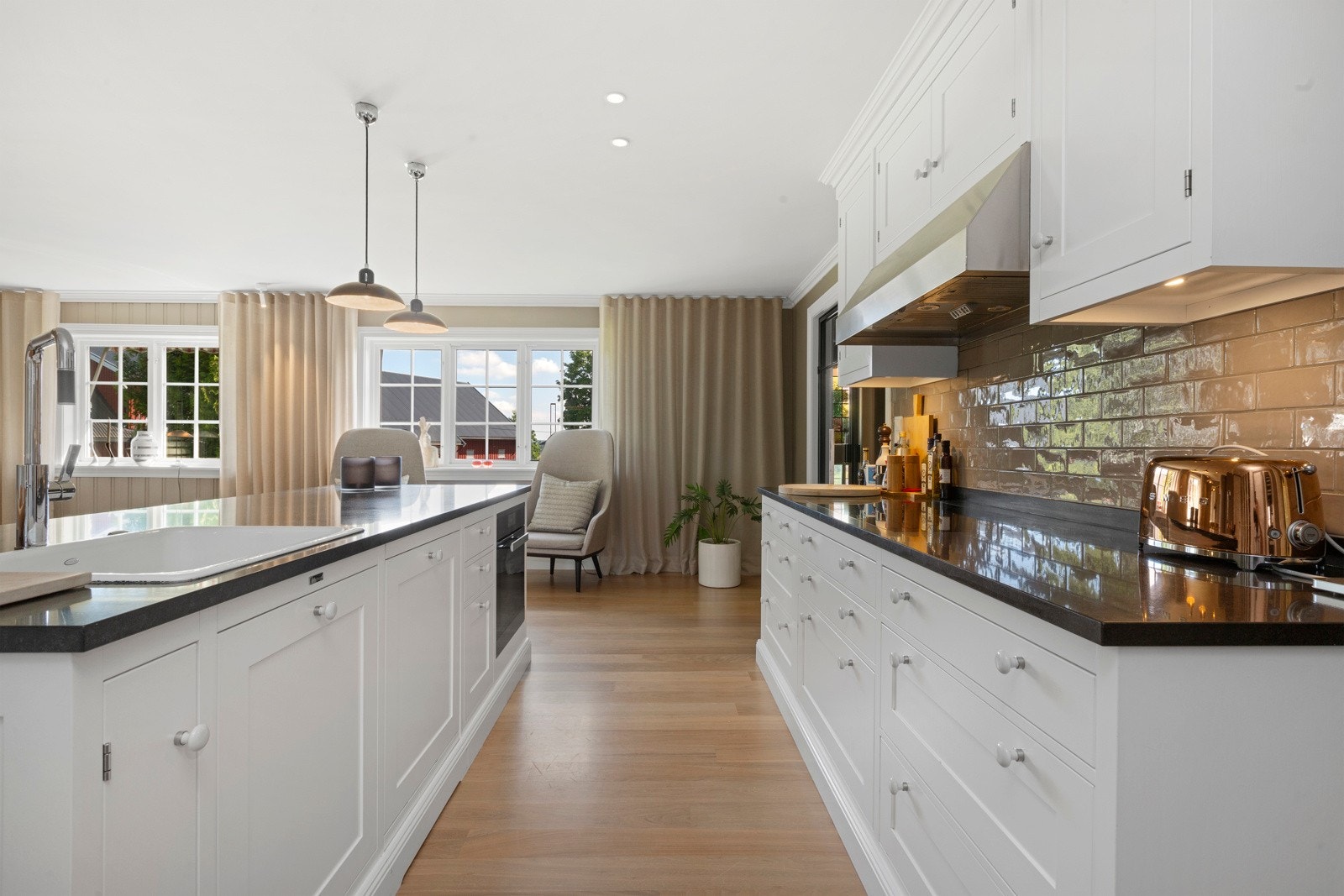 En svært påkostet gård med en usedvanlig flott hovedbygning og et vakkert tunområde. Redusert pris!